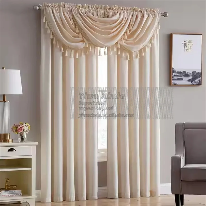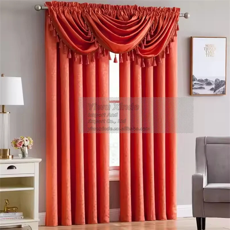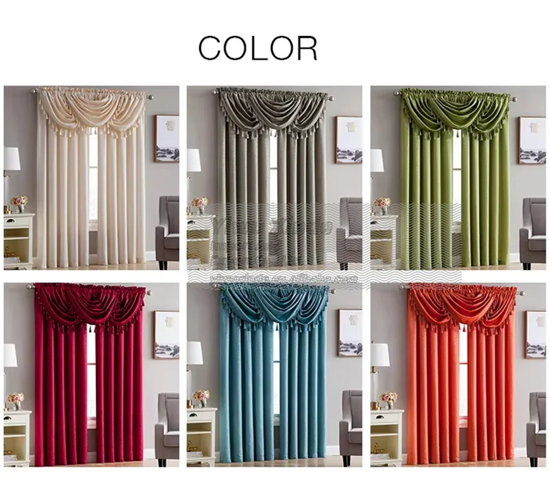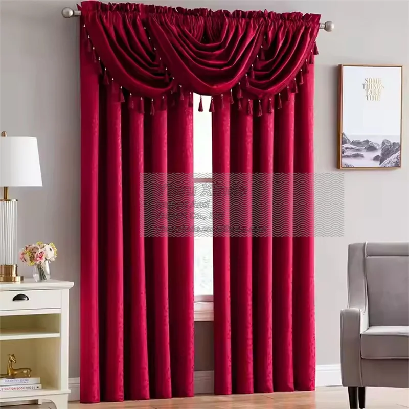 Wholesale Custom Wave Jacquard Solid Curtains with Valance 100% Polyester All-Season Blackout for Home Living Room