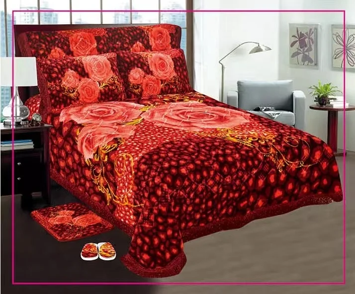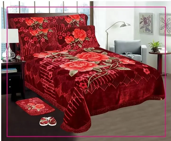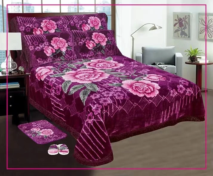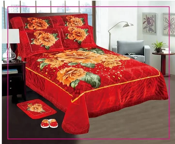 Hot Sale Winter Flower Design Middle East Market Adults Wedding 7pcs Blanket Bedding Set