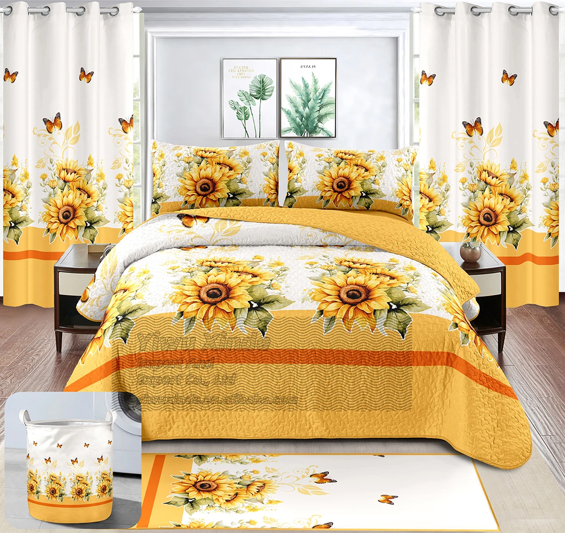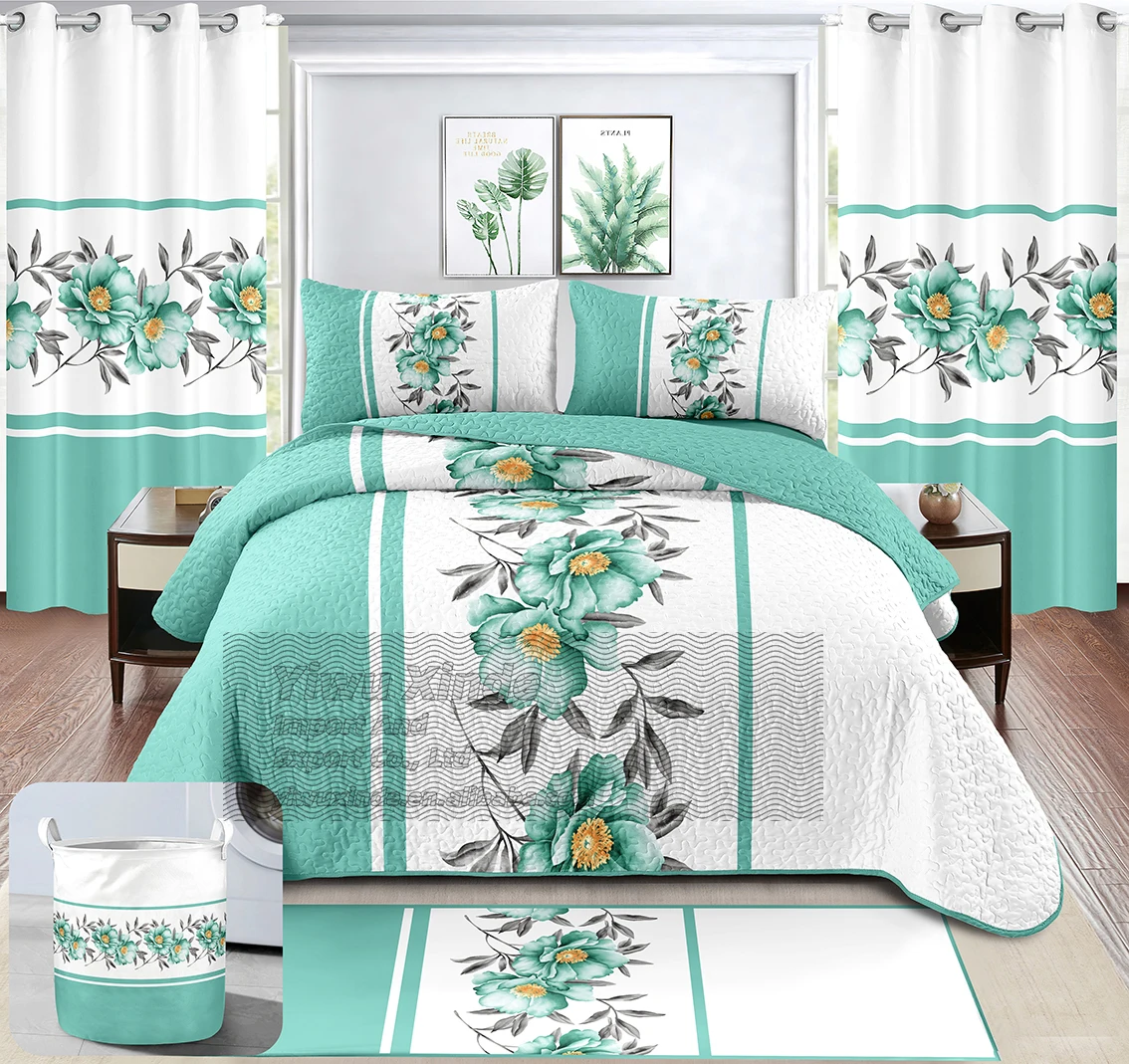 8-Piece King Size Bedding Set | Quilt, Bed Sheet & Matching Curtains | Complete Bedspread Set for King Bed Wholesale
