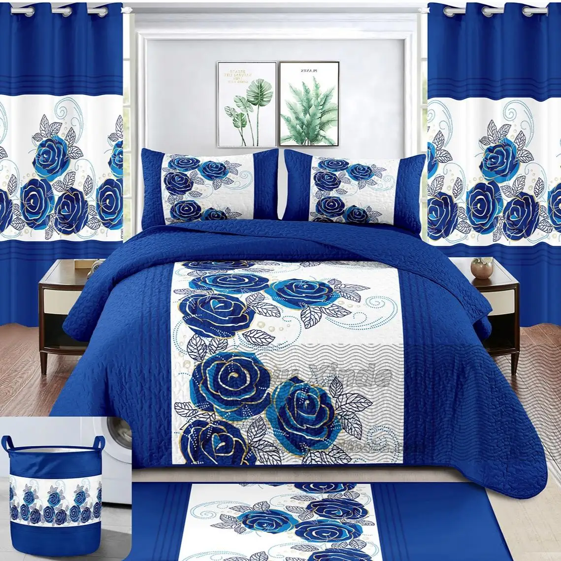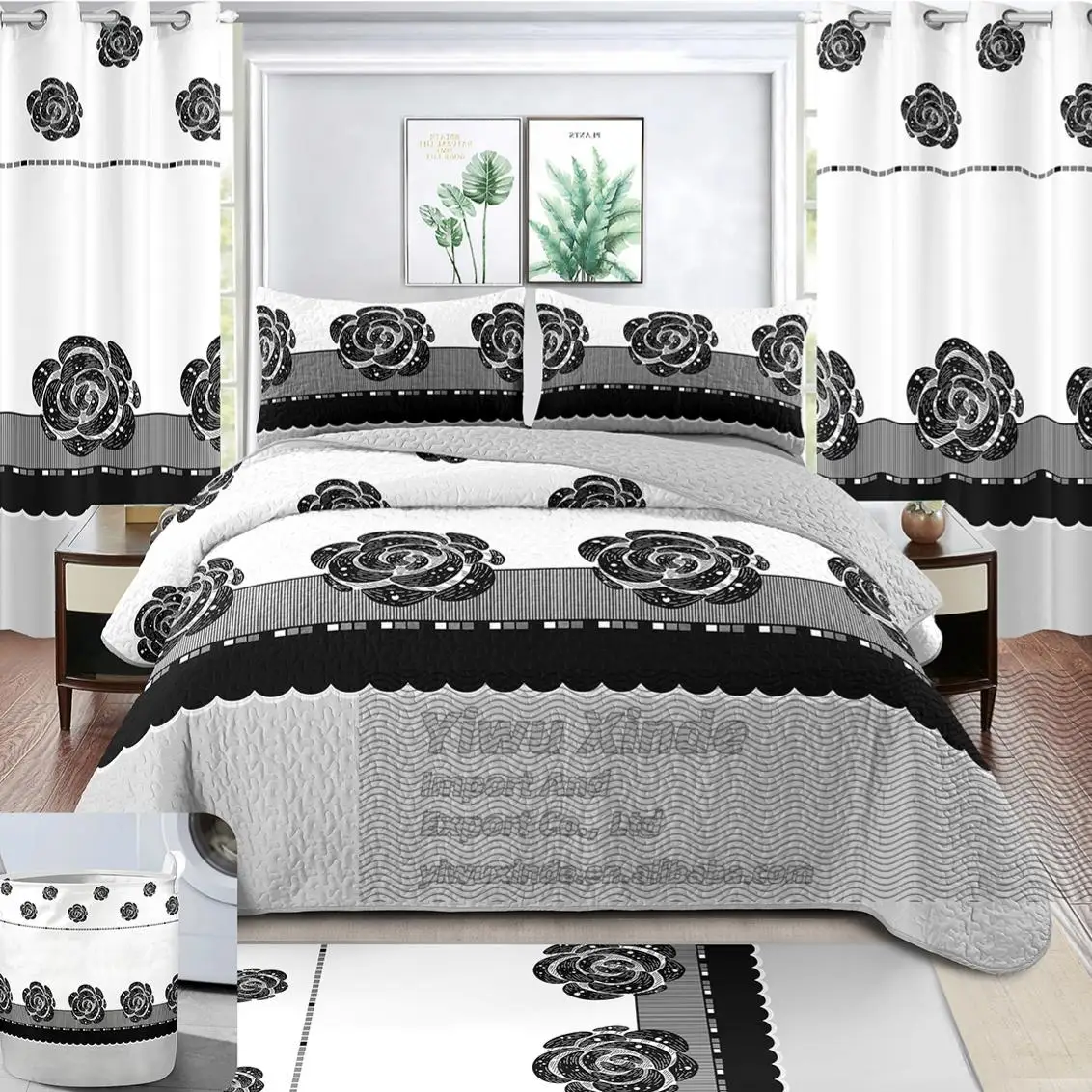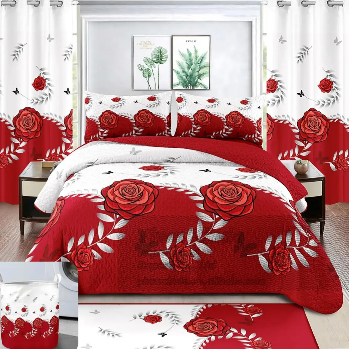 Wholesale 8 Pieces Bedding Set with Curtains, Complete Bedspread & Sheet Collection in Stock for Mix Orders