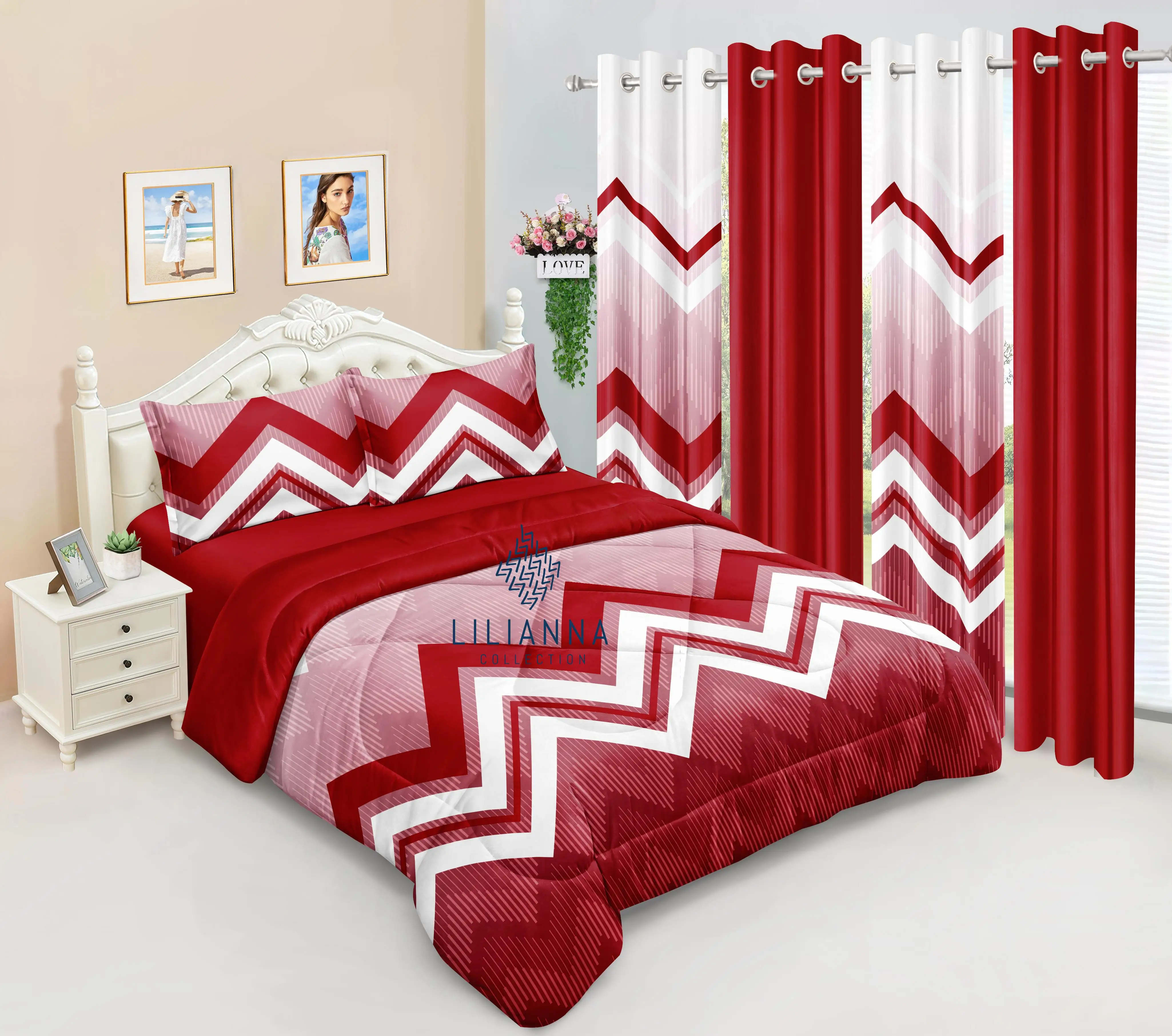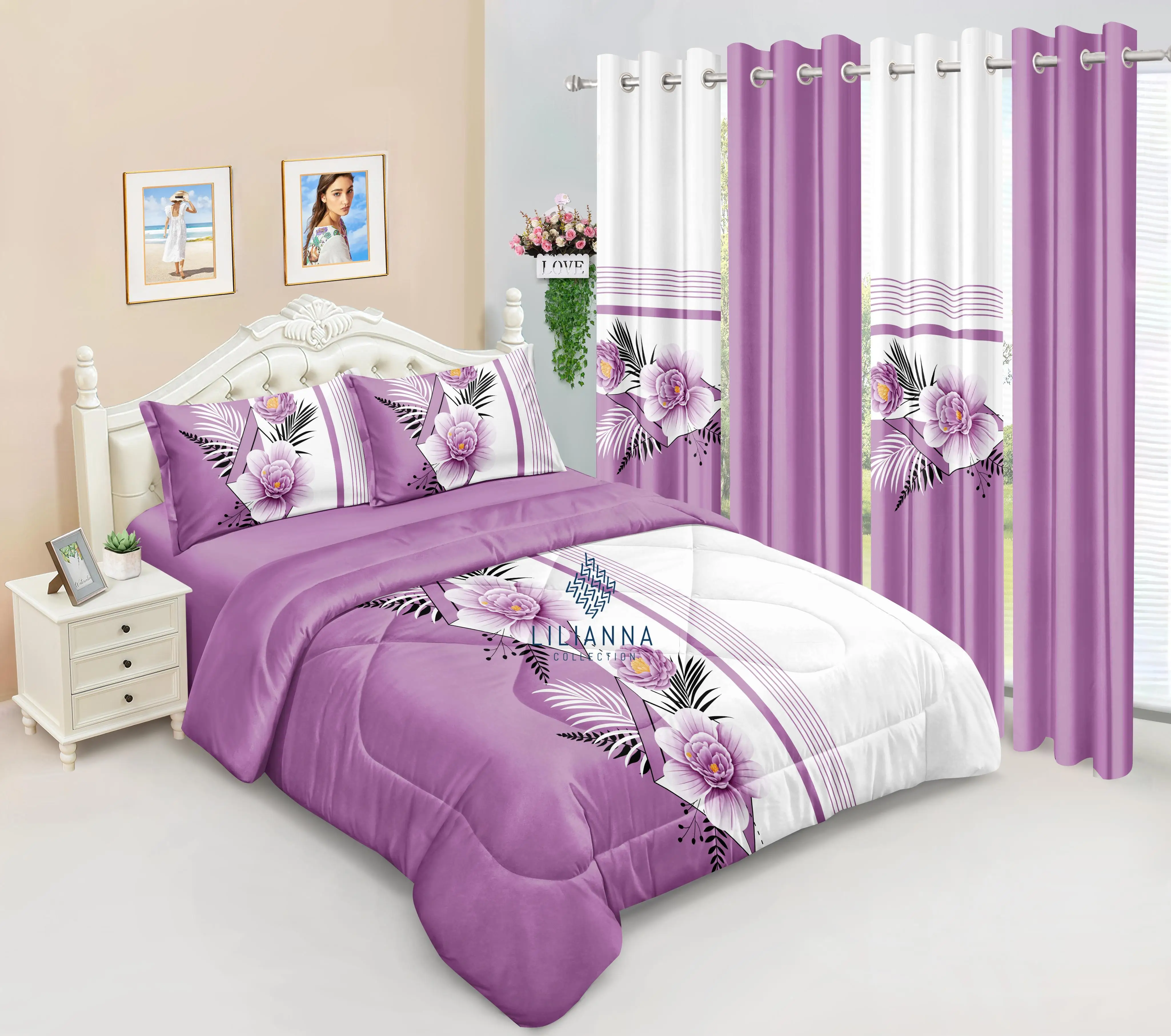 Ready to Shipping King Size 8PCS Soft Comforter Bedding Set With Fitted Sheet and 2PCS Pillowcases and 4 Pieces Curtains