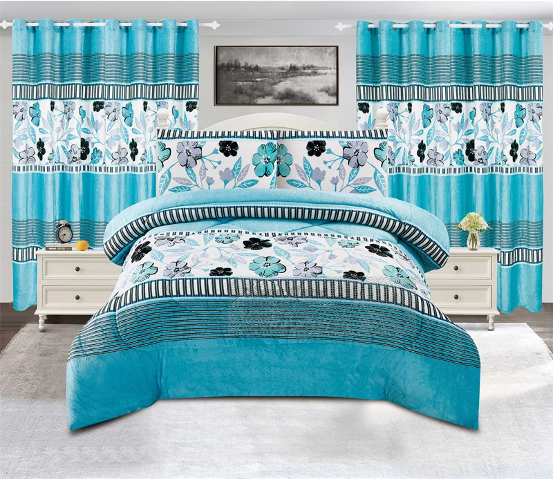 Winter Warm Borrego Blanket With Match Curtains Comfortable Winter Comforter Set
