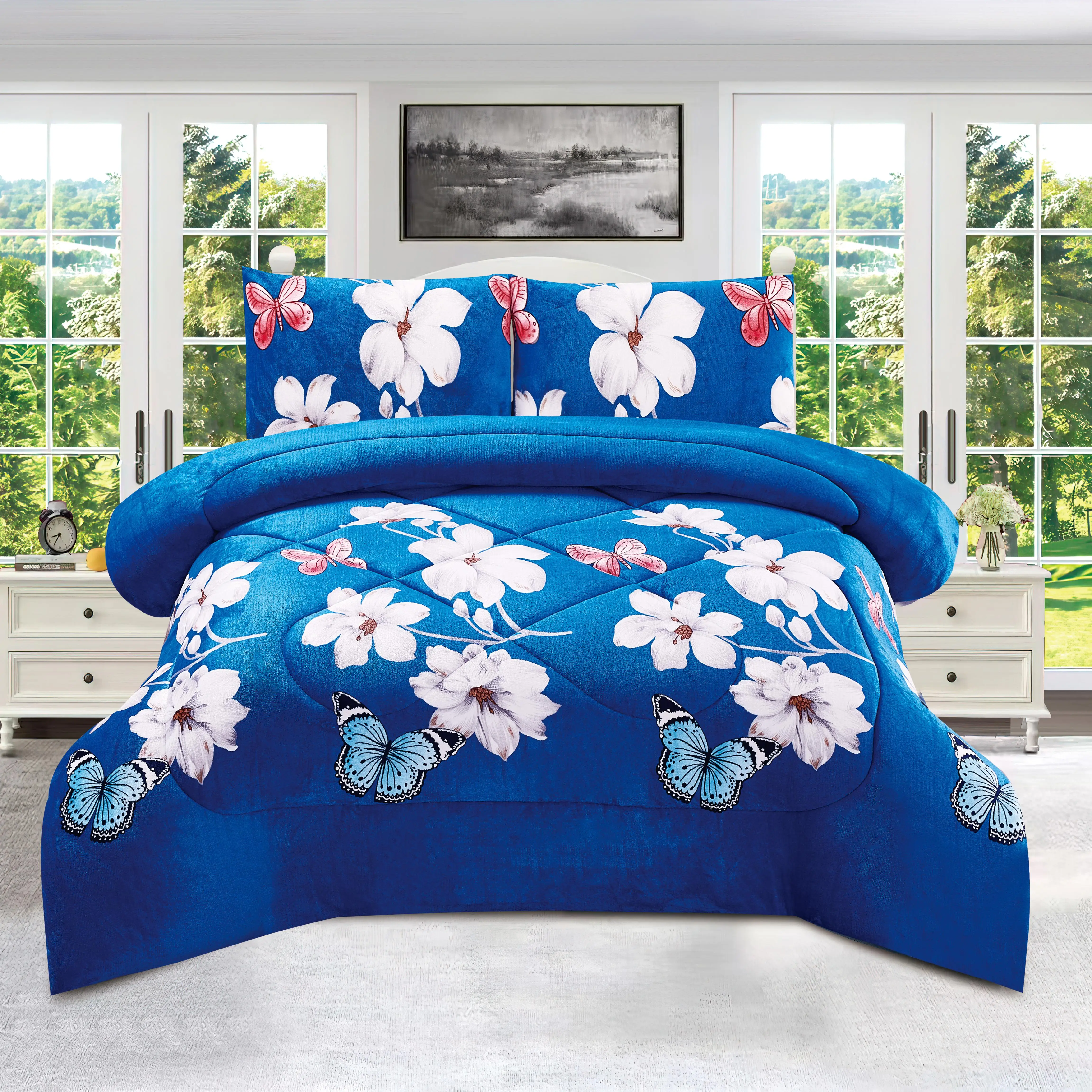New Colors 3PCS Strip Graphic Borrego Velvet Fleece Blanket Comforter Bedding Set for Winter Season