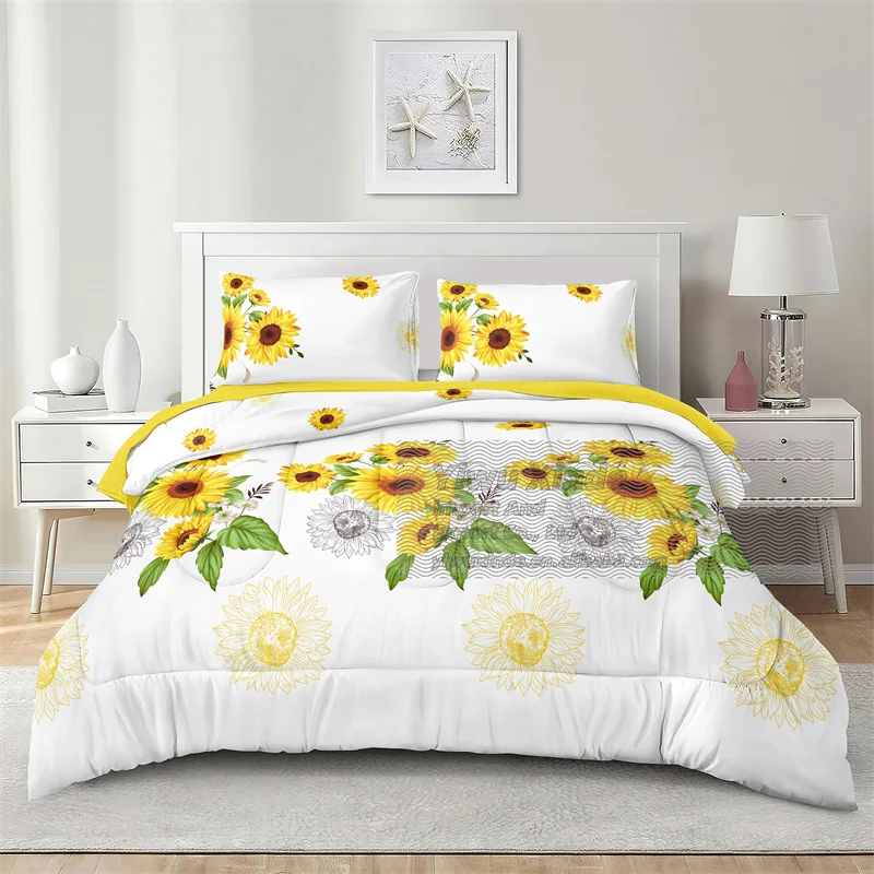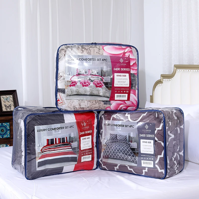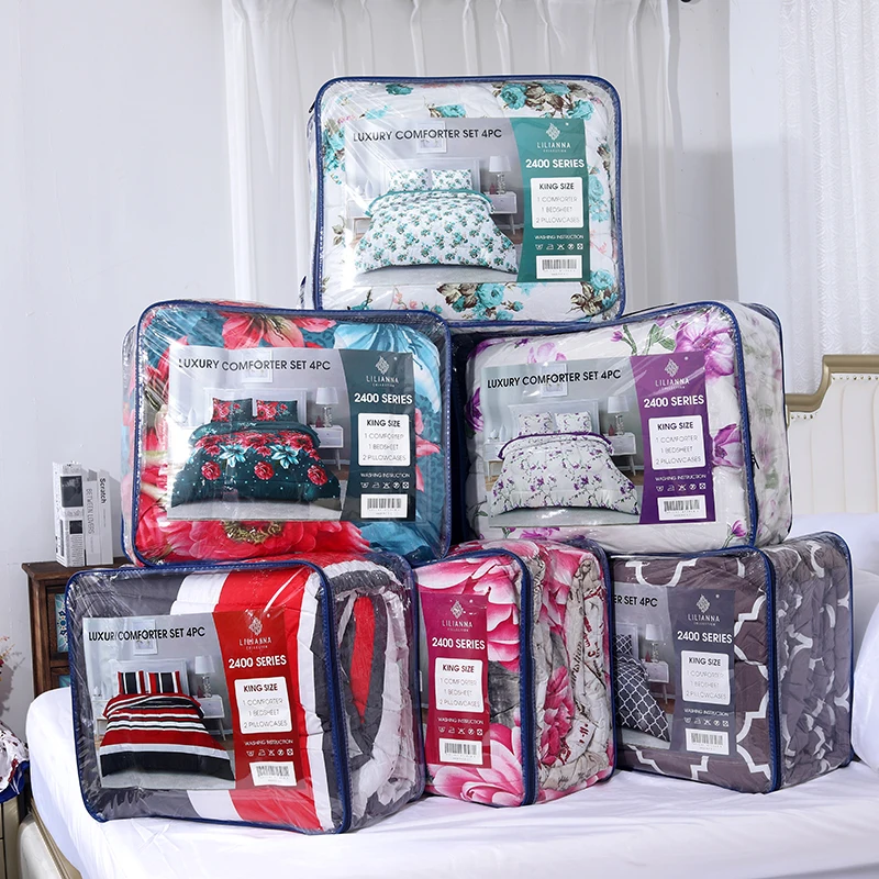 Wholesale Cotton Touch Feeling 4 Pcs Duvet Set with Matching Curtains Floral Printed king Size Comforter Sets Bedding Sheet Set