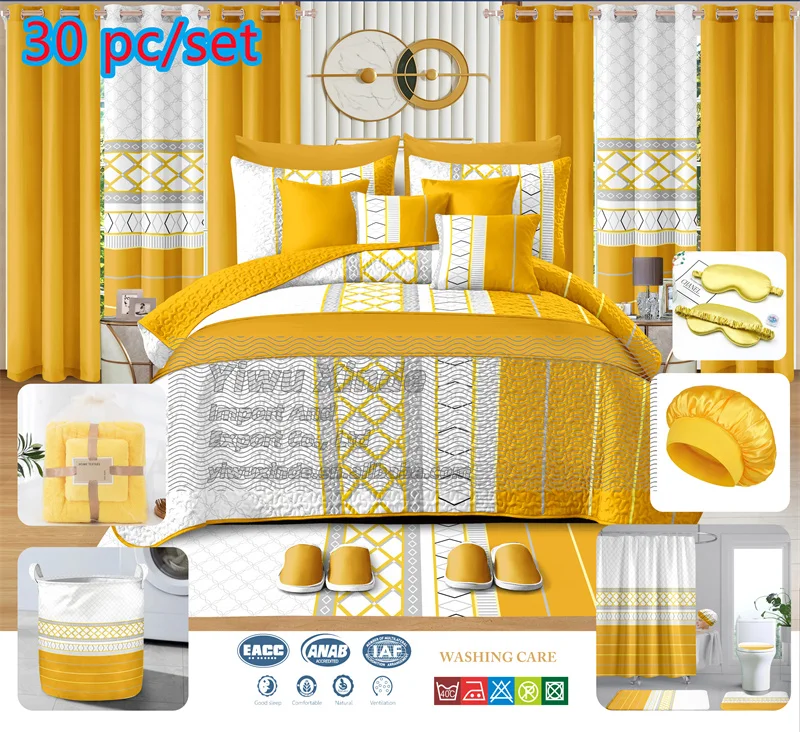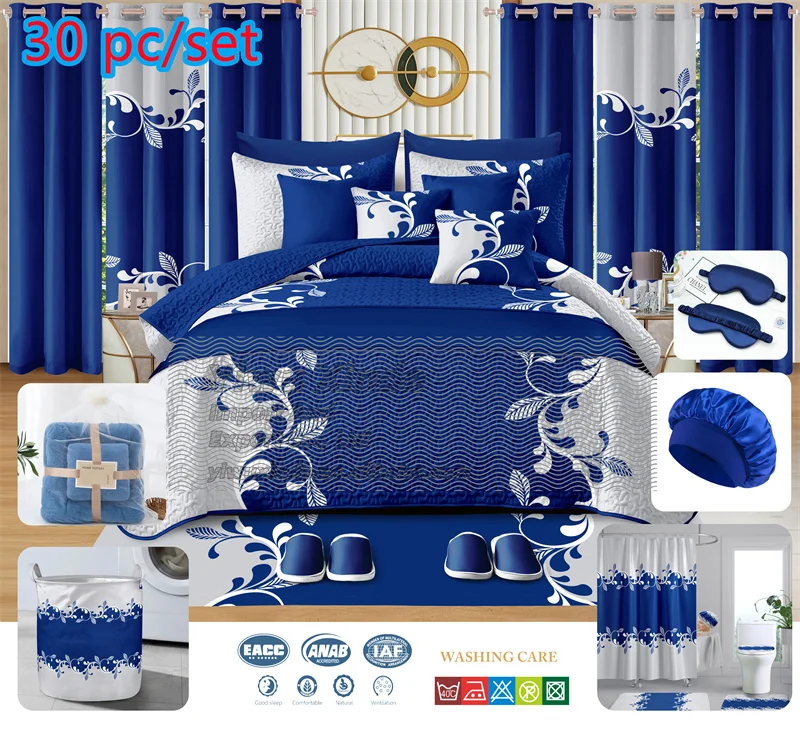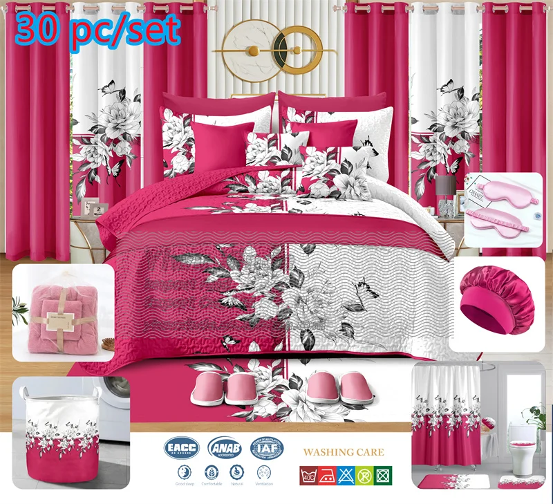Luxury king Size 30 Pcs Bedspread Bedsheets Sets Cotton Quilt Bedspread Set in pink Bedding Set 30piece