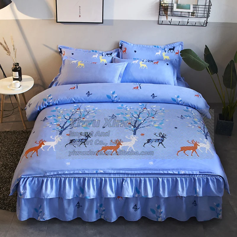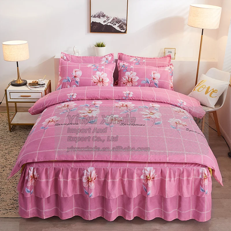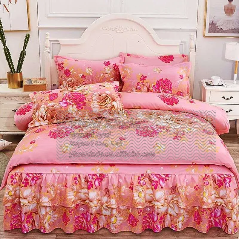 Wholesale New Design 4PCS Ruffled Bed Skirt Ruffle Bed Sheet Case Quilt Cover Duvet Set Blue Red Pink Bedskirt