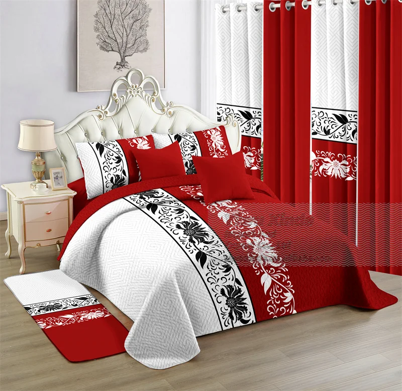 2026 Wholesale Bed Sheet king 12 Piece Bedding Set king Size with Carpet 12 Pcs Quilted Bedspread Bedding Set with Curtains