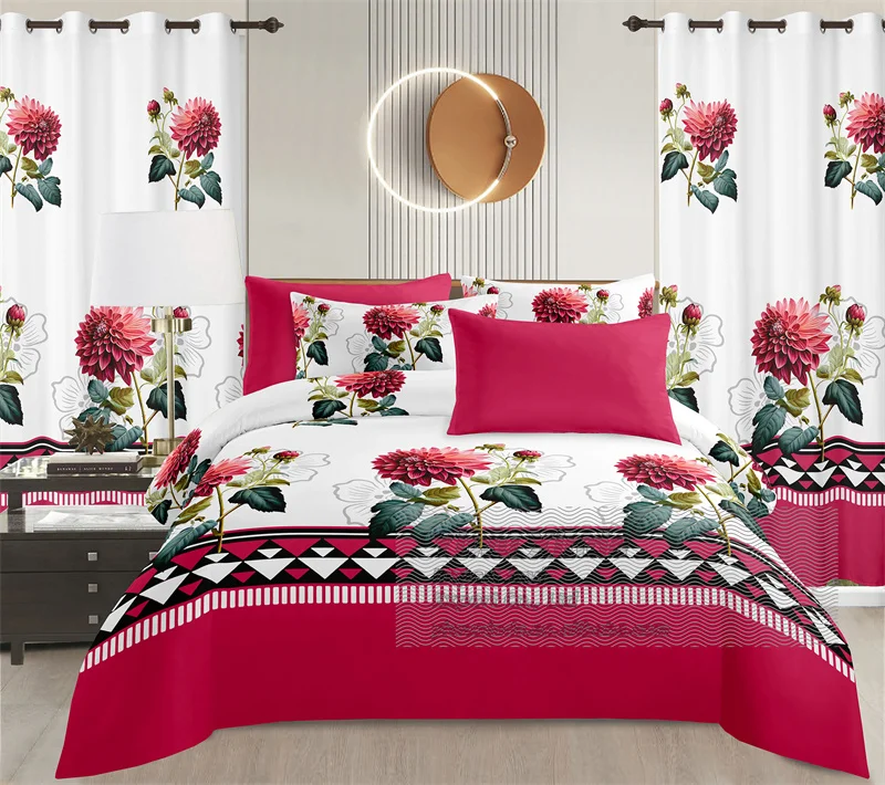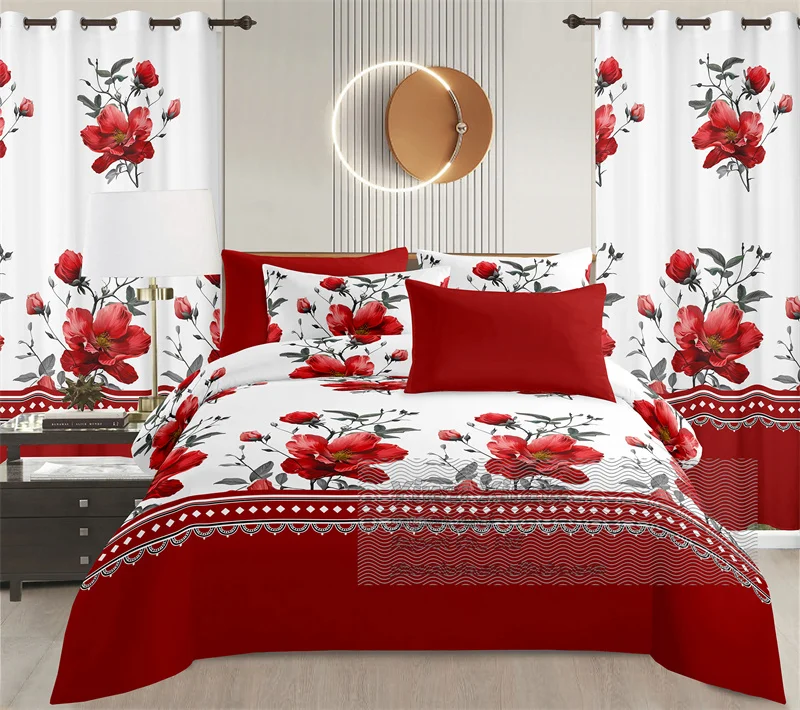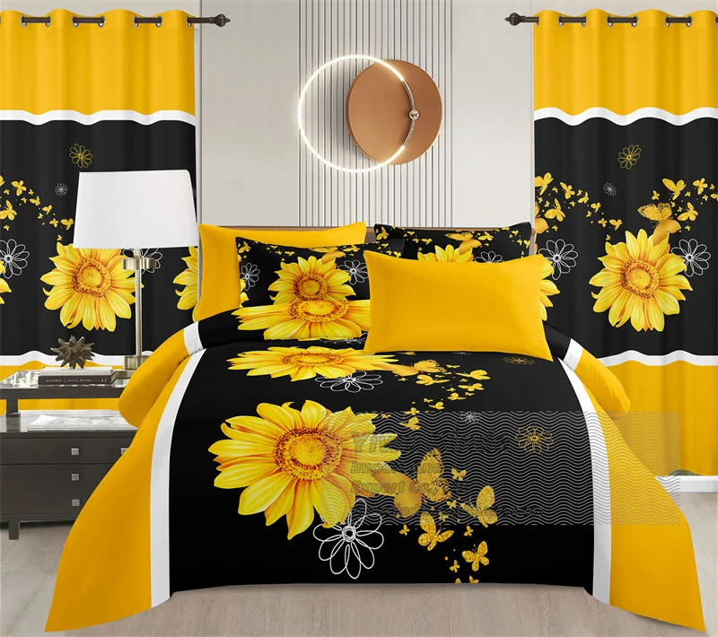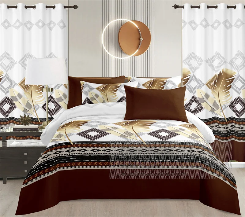Luxury King Size 8PCS Bedding Set Microfiber Soft Sheet Curtains Combo Home Textile Wholesale