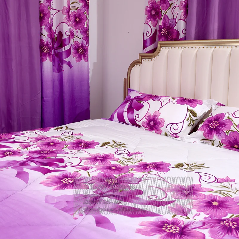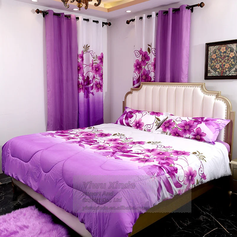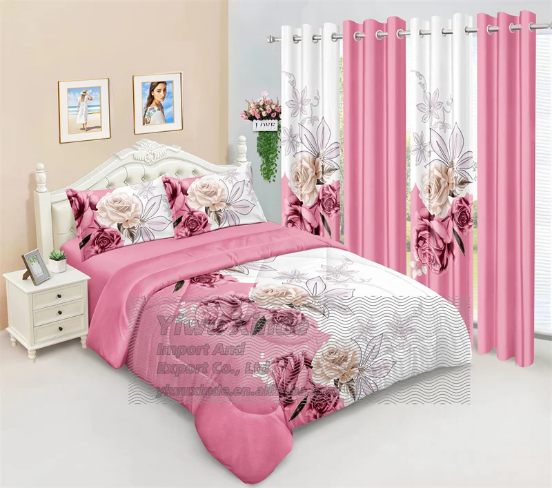 2026 America Style King Size 8-Piece Romantic Floral Print Eco-Friendly Comforter Bedding Set Matching Curtains Polyester Filled