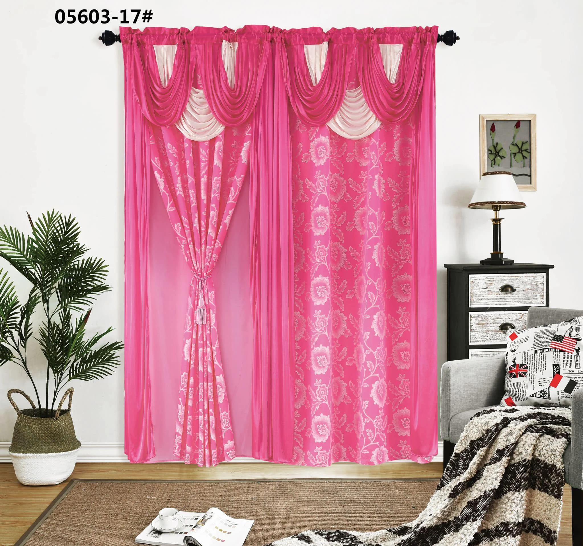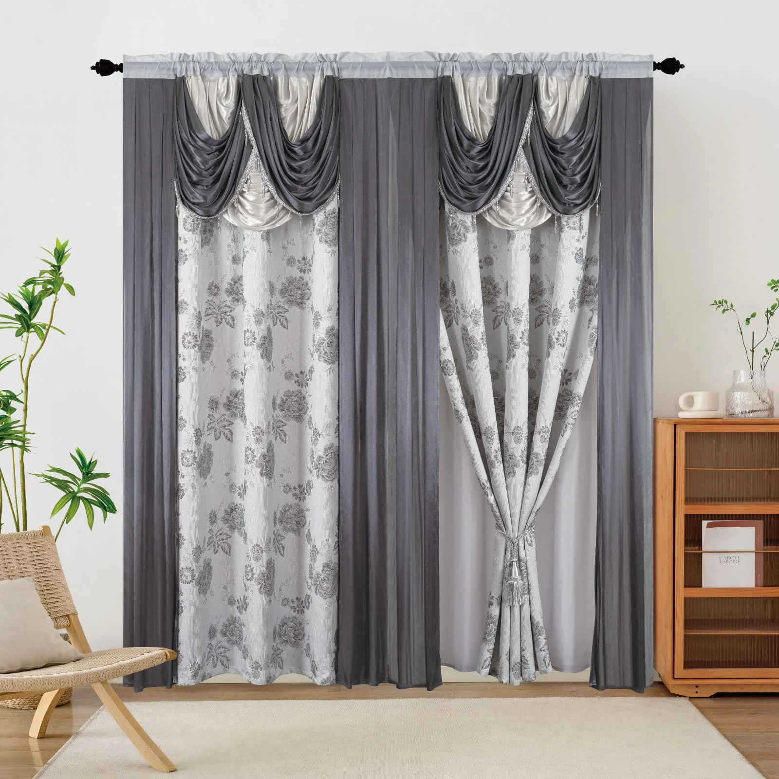 American Style Hot Sale Double Layer Curtains Set for Home Bedroom Rideaux King Size for Window Curtains With Valance