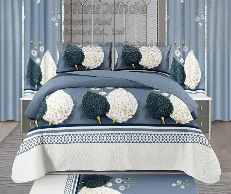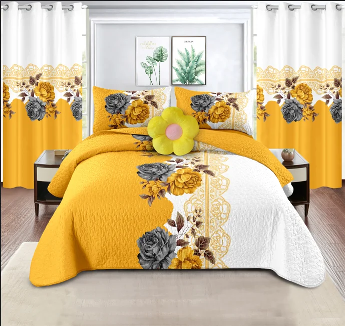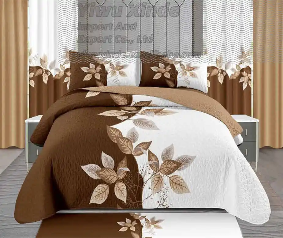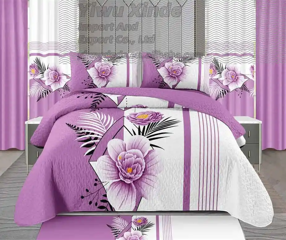 Hot Sale 6 Pieces Bedspread Set with Matching Curtains Quilted Bed Cover king Size Bedding Set