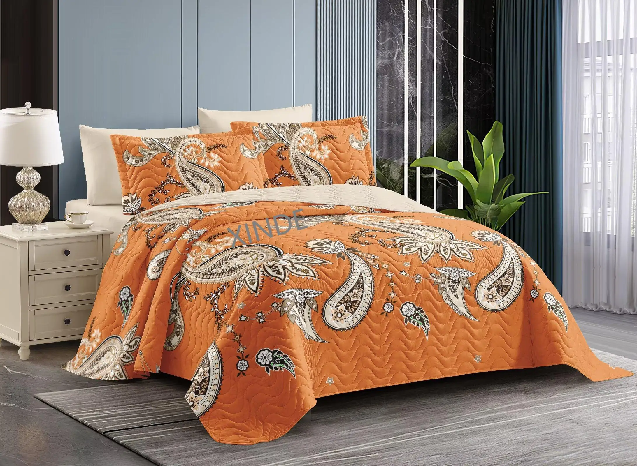 New Sunflower Design 3 Pieces Summer Quilt Bed Spread Fitted Sheet Bedding Set With Pillowcases and Cushions