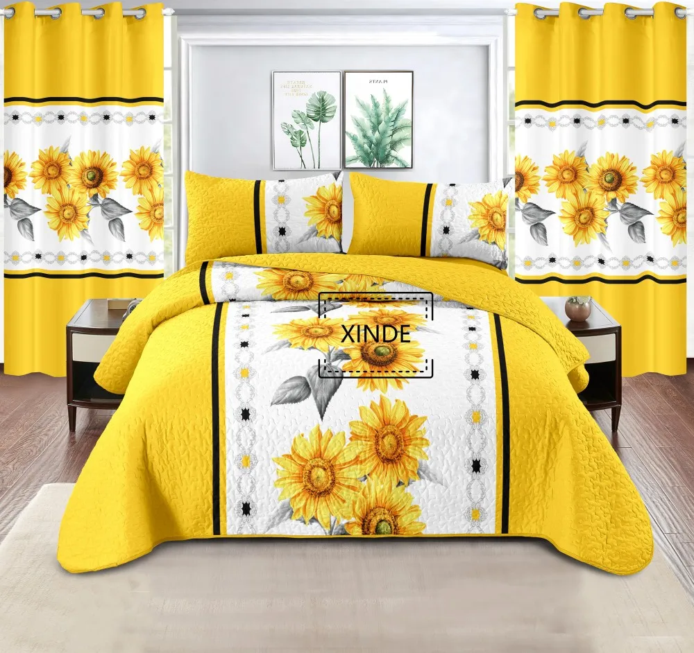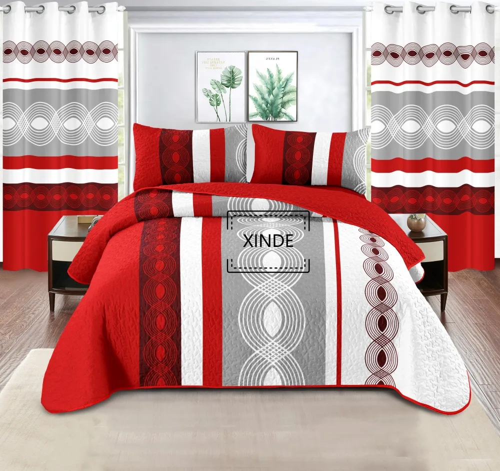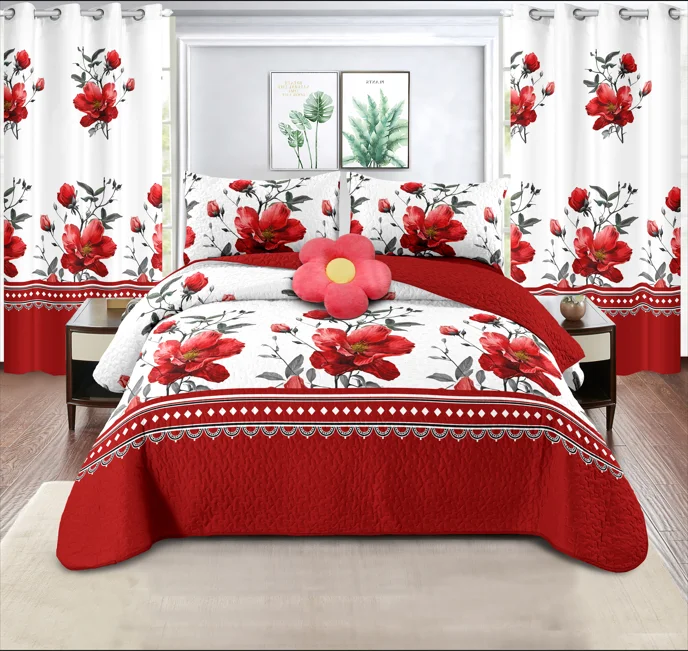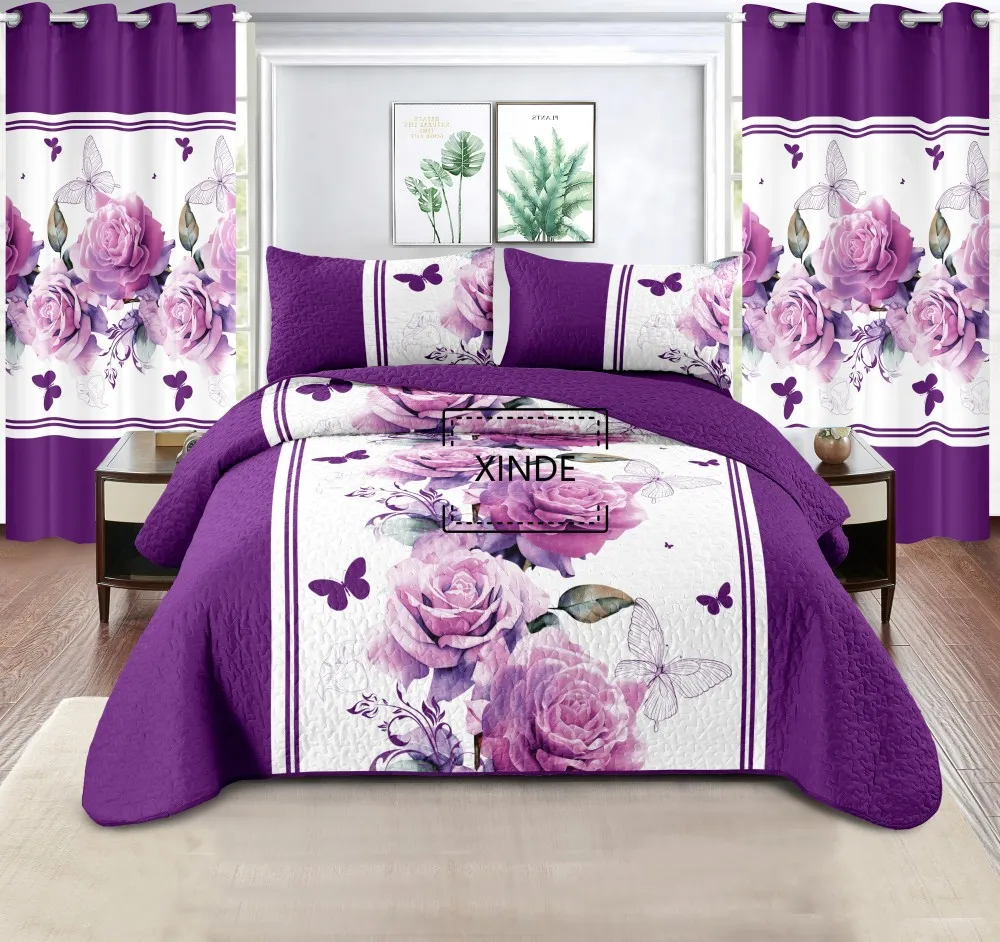 6pieces Bedspread Set with Matching Curtains Top Sale Customized king Size Quilt Bed Sheet Set in Stock