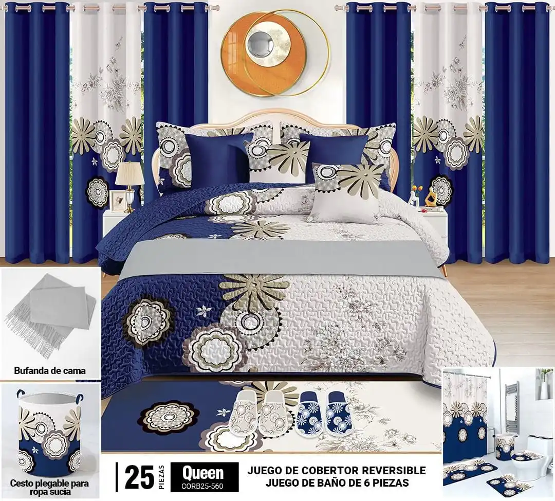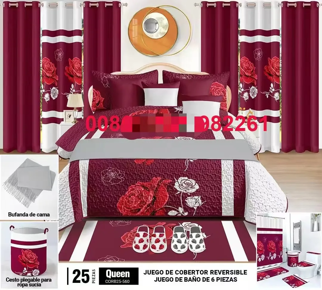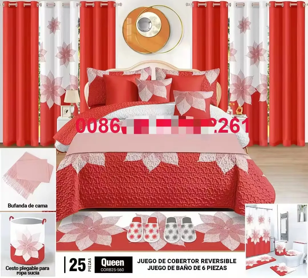 Wholesale 25 Pcs King Size Bedding Set with Matching Curtains Floral Pattern 400TC Polyester/Cotton Fabric