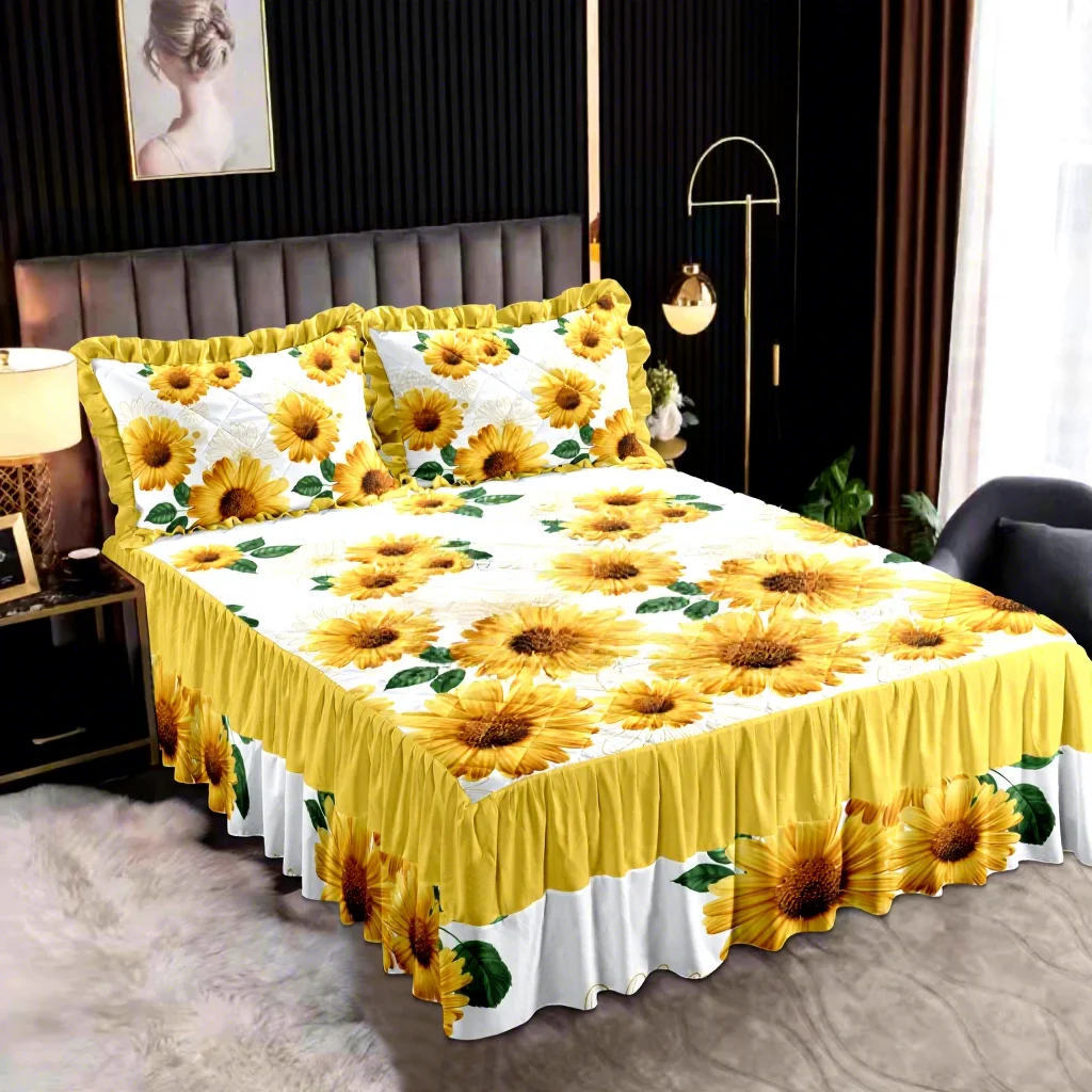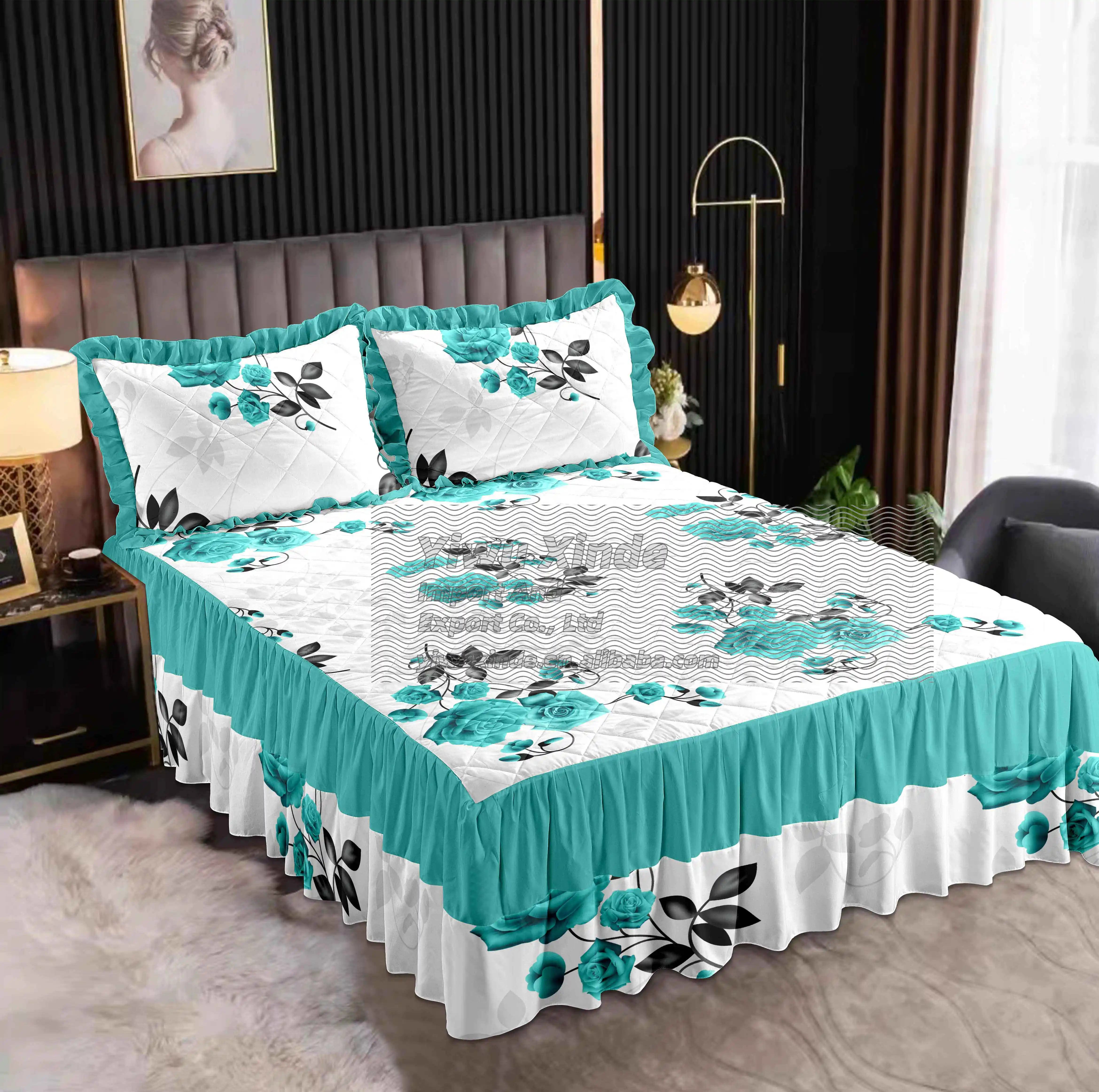 3 Pieces Flower Ruffle Bed Skirt Cover with Pillow case Ready to Ship Quilts Set Bedding Sheet Set for Bedroom