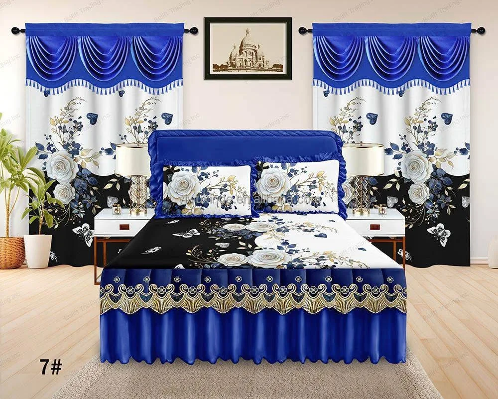 New America Model 5pcs Bedskirt Set Curtains with Valance Luxury king Size Quilted 5 Pieces Bedskirt Bedding Set