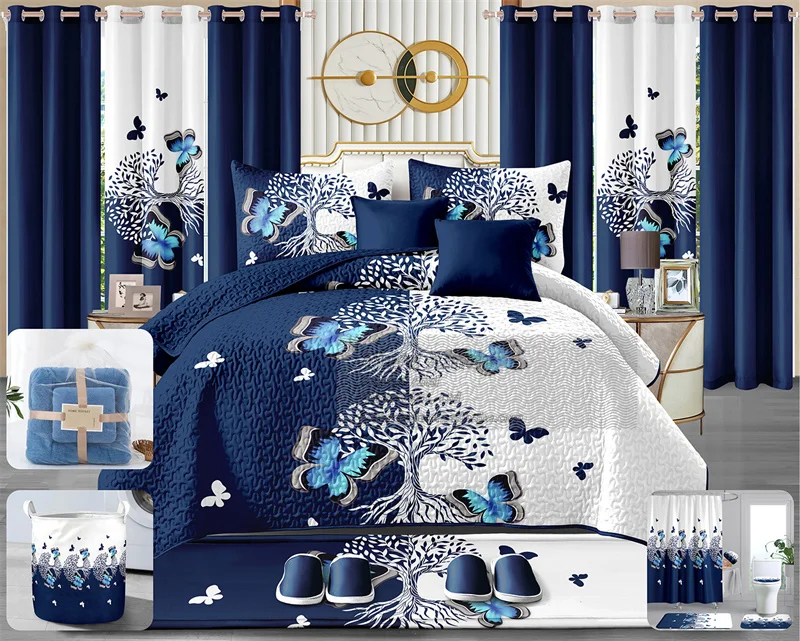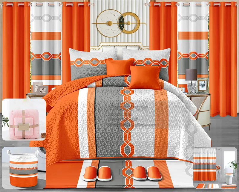 24 Piece Premium Bedroom Bundle Soft Bedding Plush Towels Sheer Drapes Floor Mats