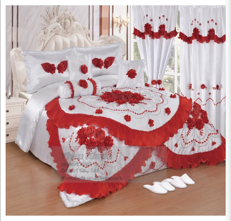 2026 Luxury Comforter Set Bridal Bedding Set 10 Pcs Wedding Set with Curtains in Stock