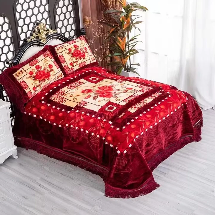 American Styles Luxury 4pcs Blanket for Winter king Size Heavy Velvet Blanket Raschel Blanket Wholesale Price Low MOQ