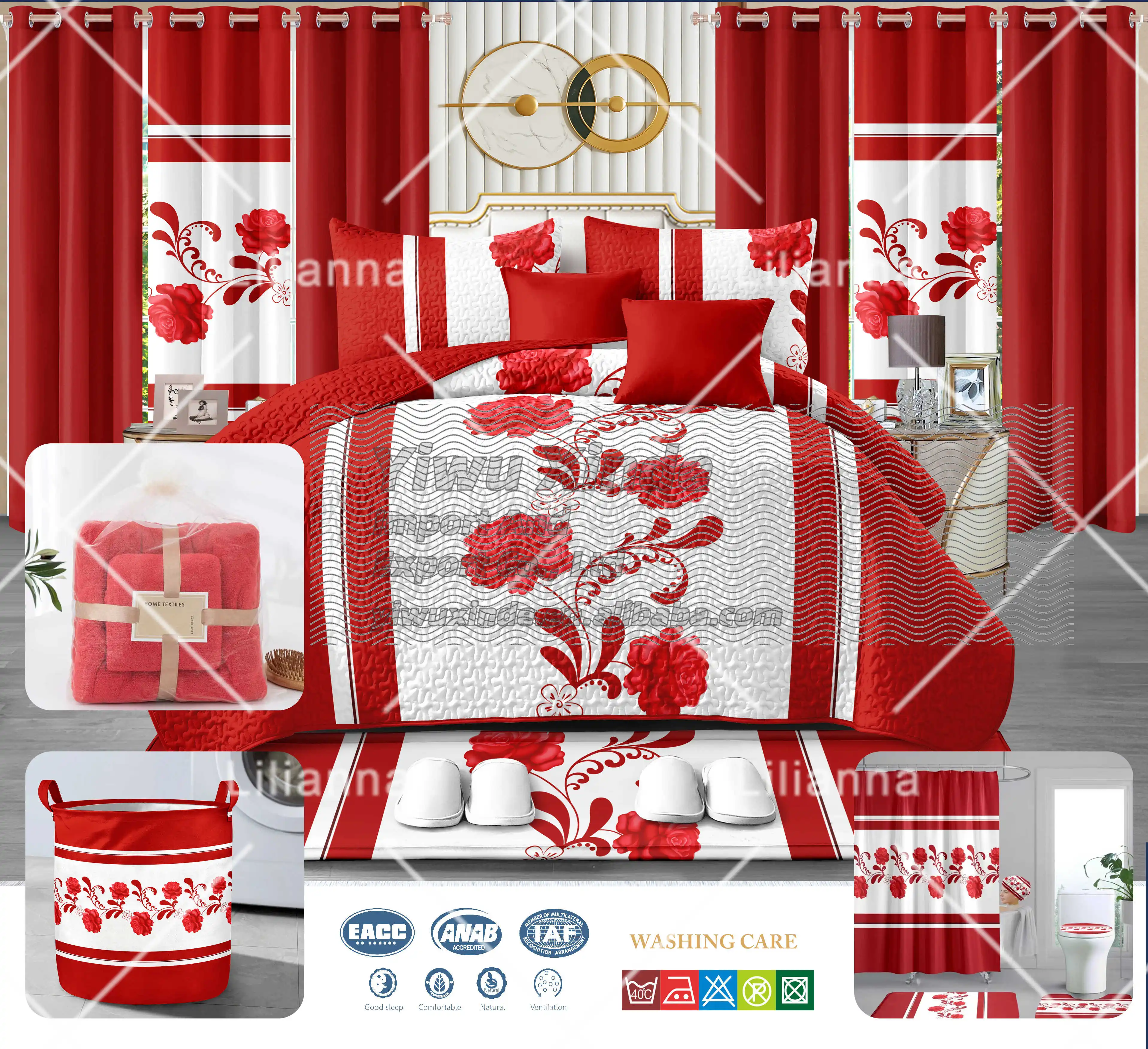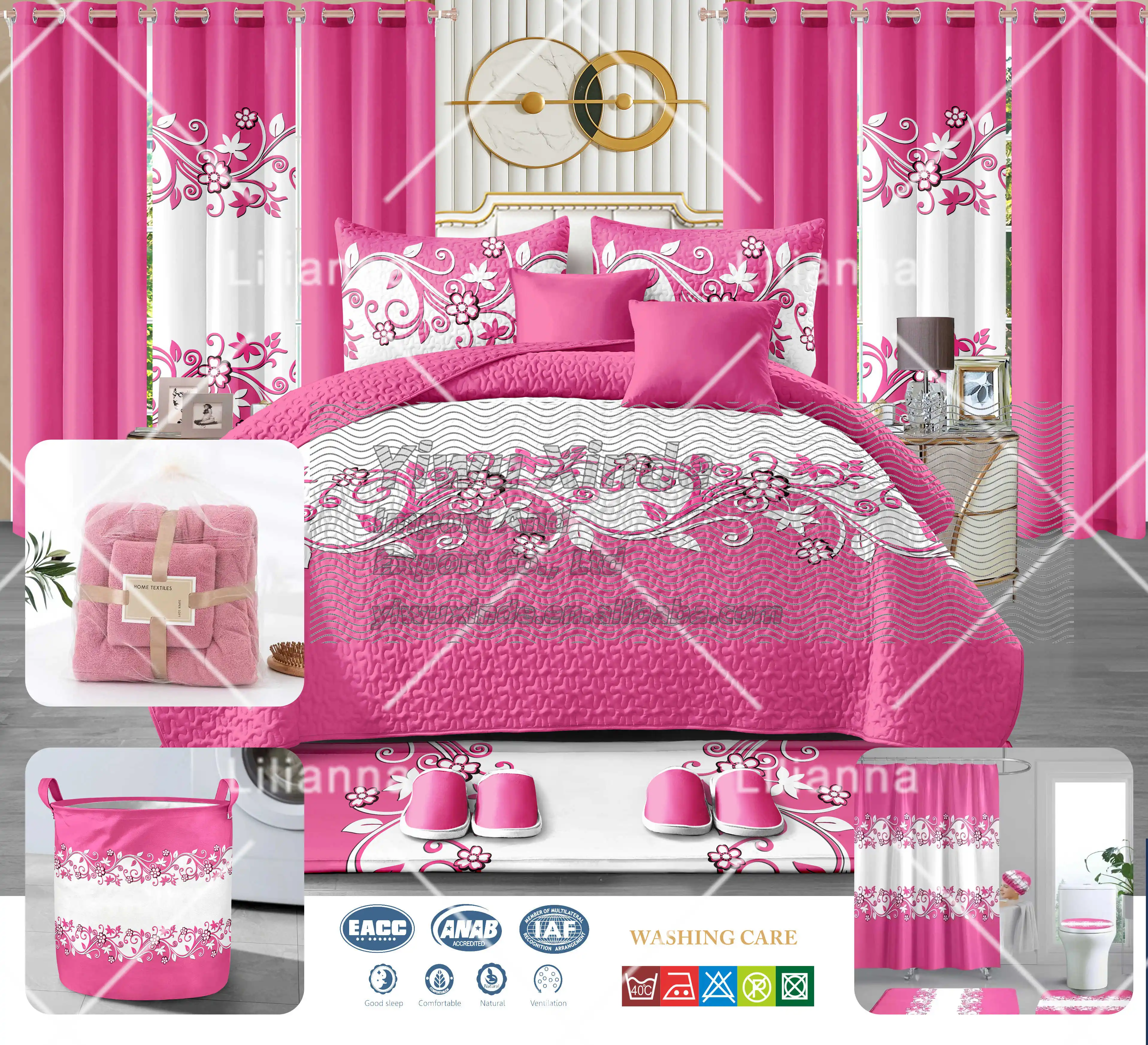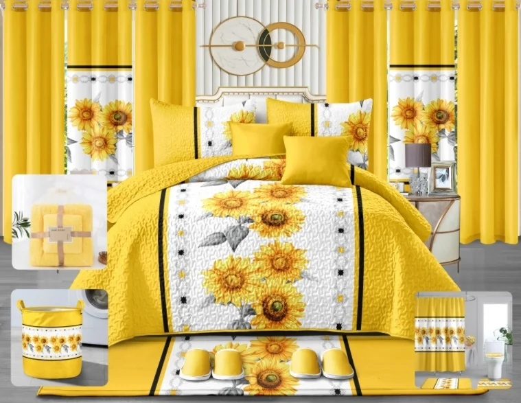 LILIANNA New Design 24pcs Bedsheet Bedspread Set Cotton king Size Flower Pattern Duvet Cover Curtain Bedding Set Quilt Cover Set