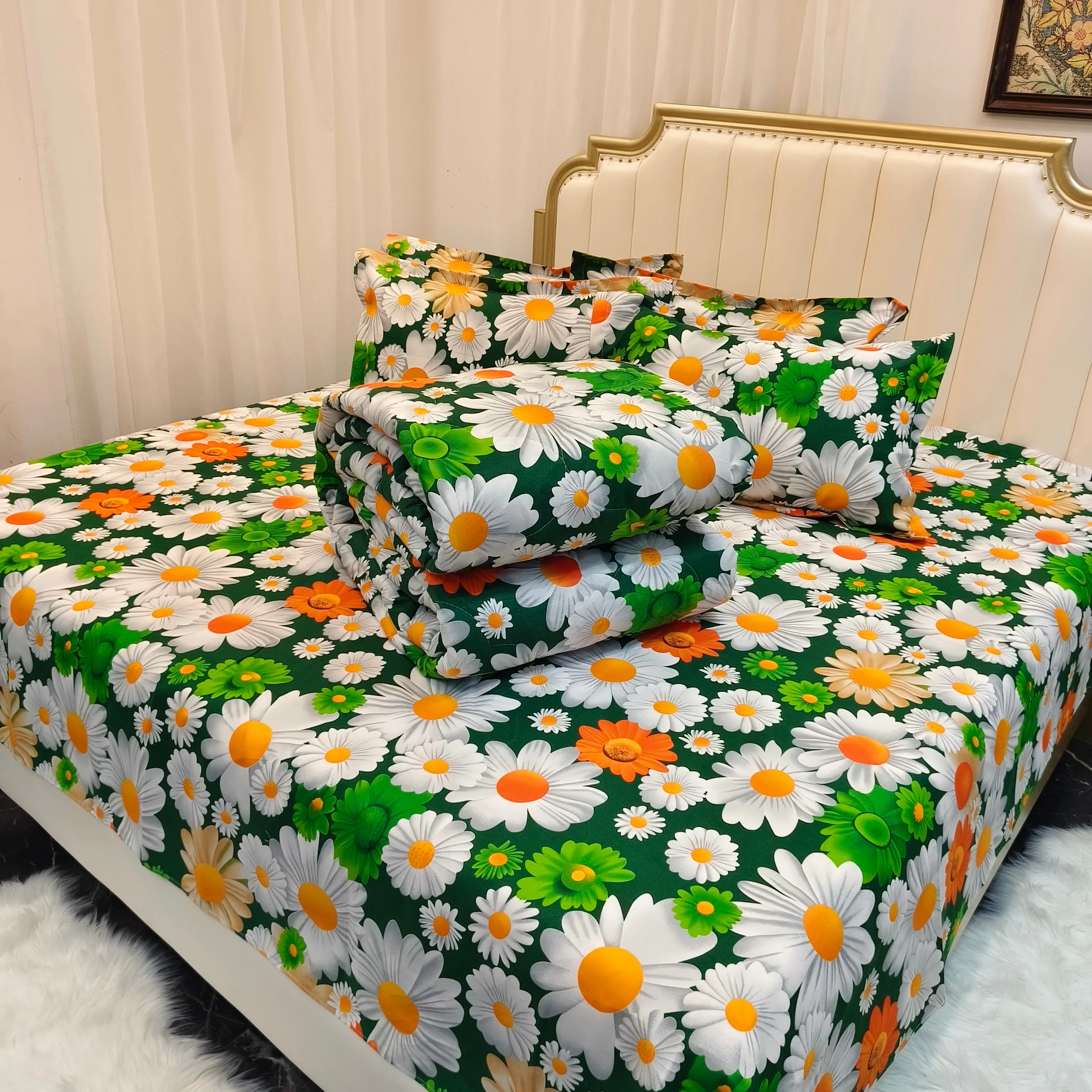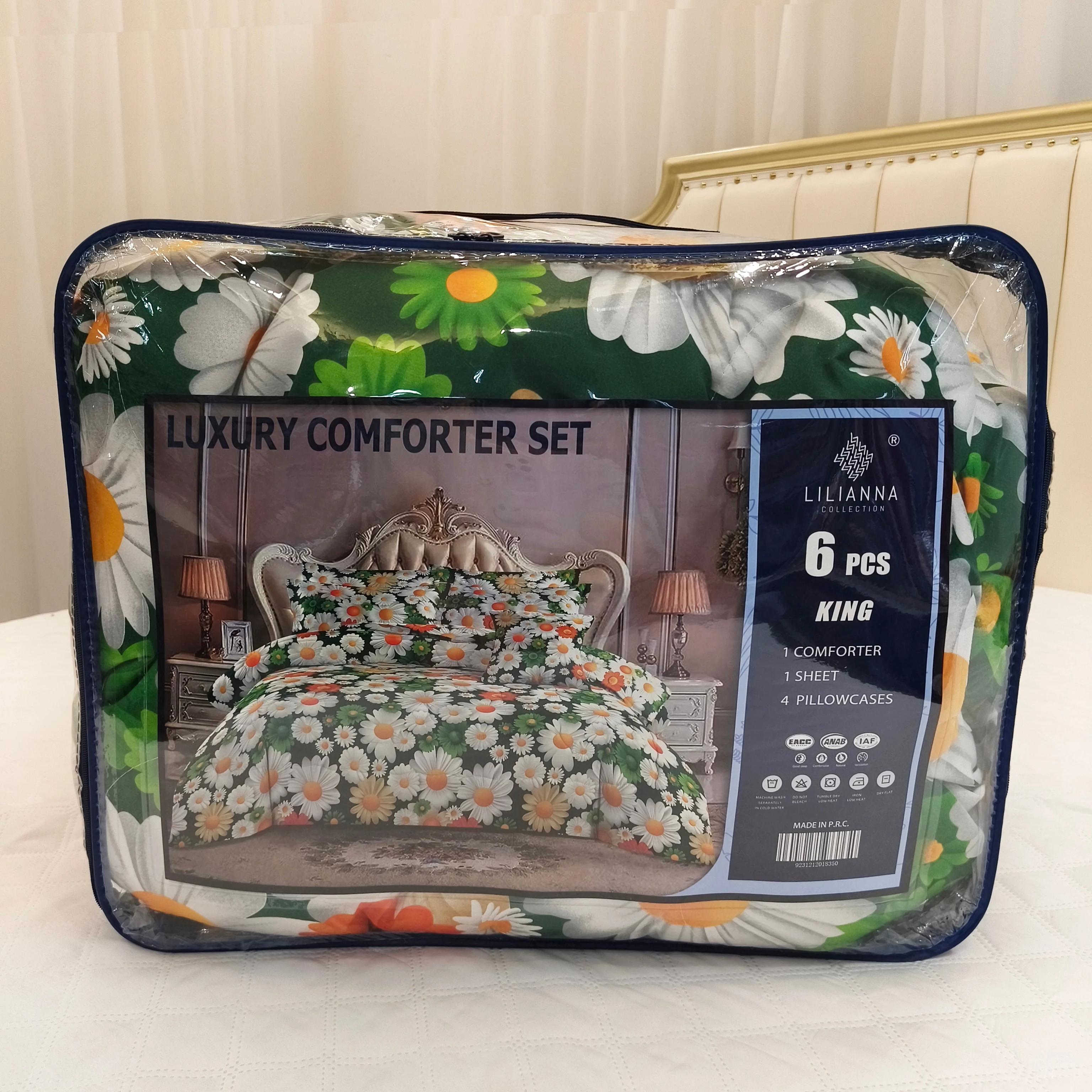Wholesale 6 Pieces Luxury Comforter King Size Hotel Modern Floral Printing Duvet Cover Set With 4 Pieces Pillowcases