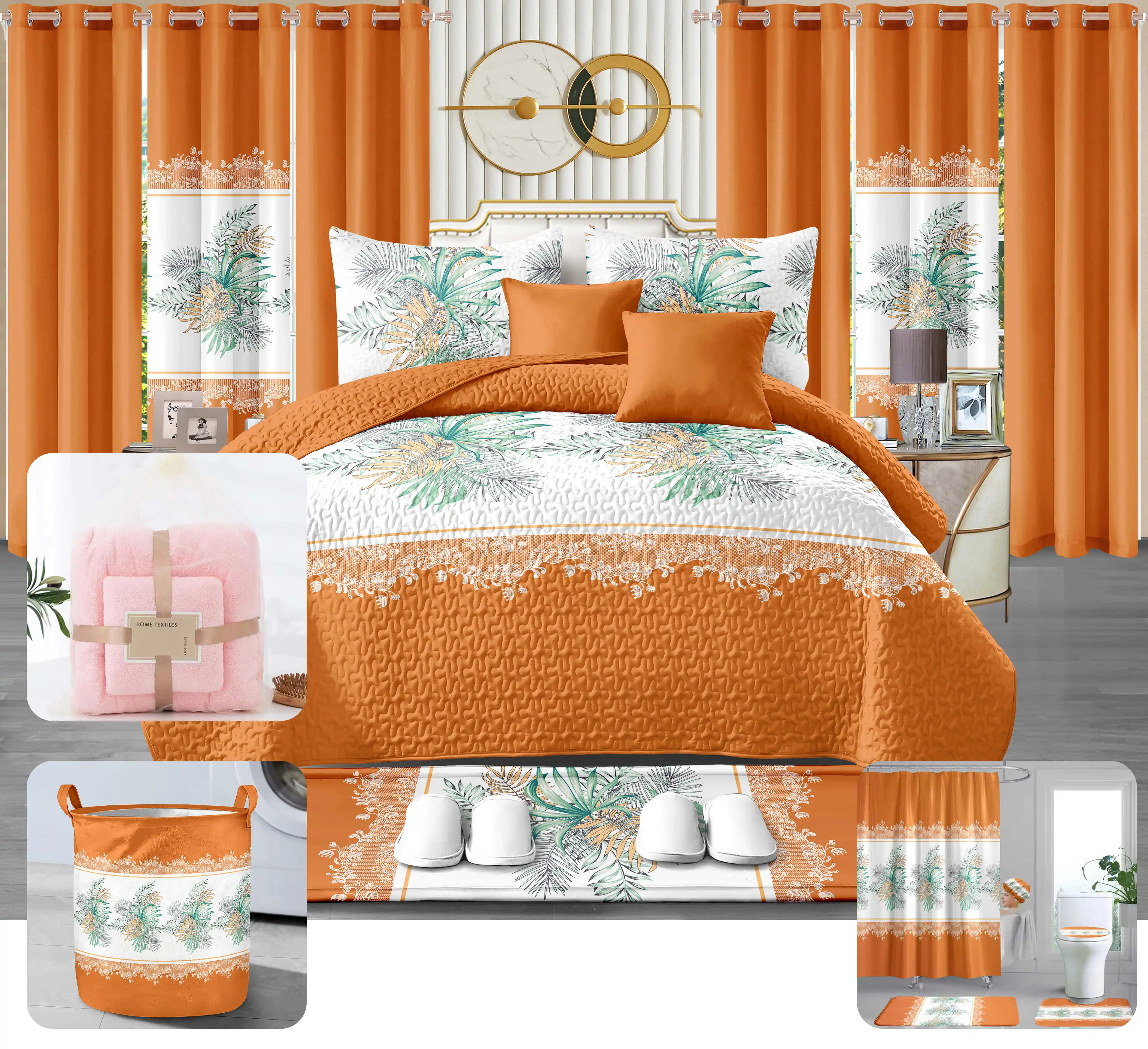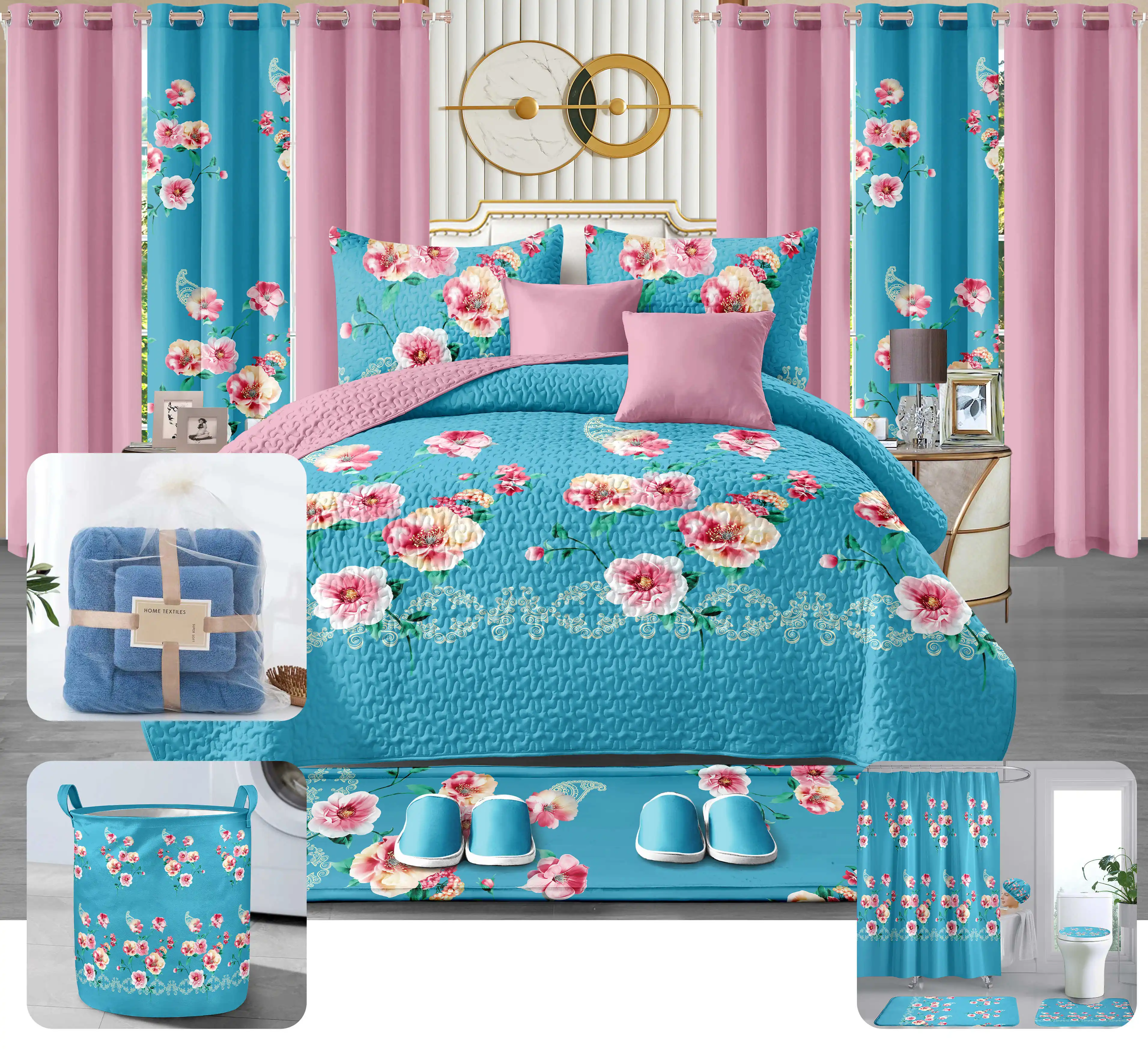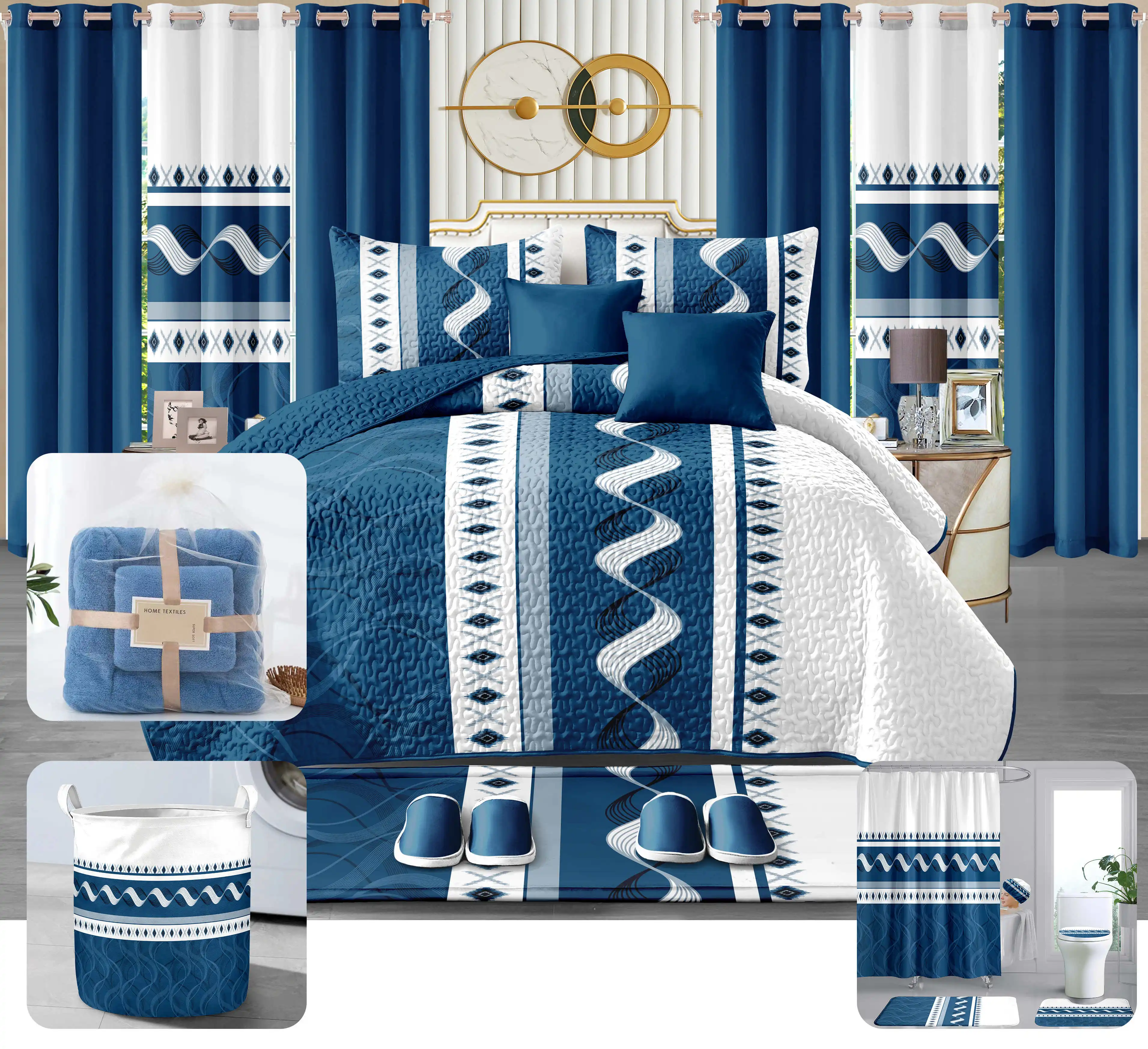 Lilianan Collection king Size 24 Piece Microfiber Bedding Set with Matching Curtains Quilt Comforter Set