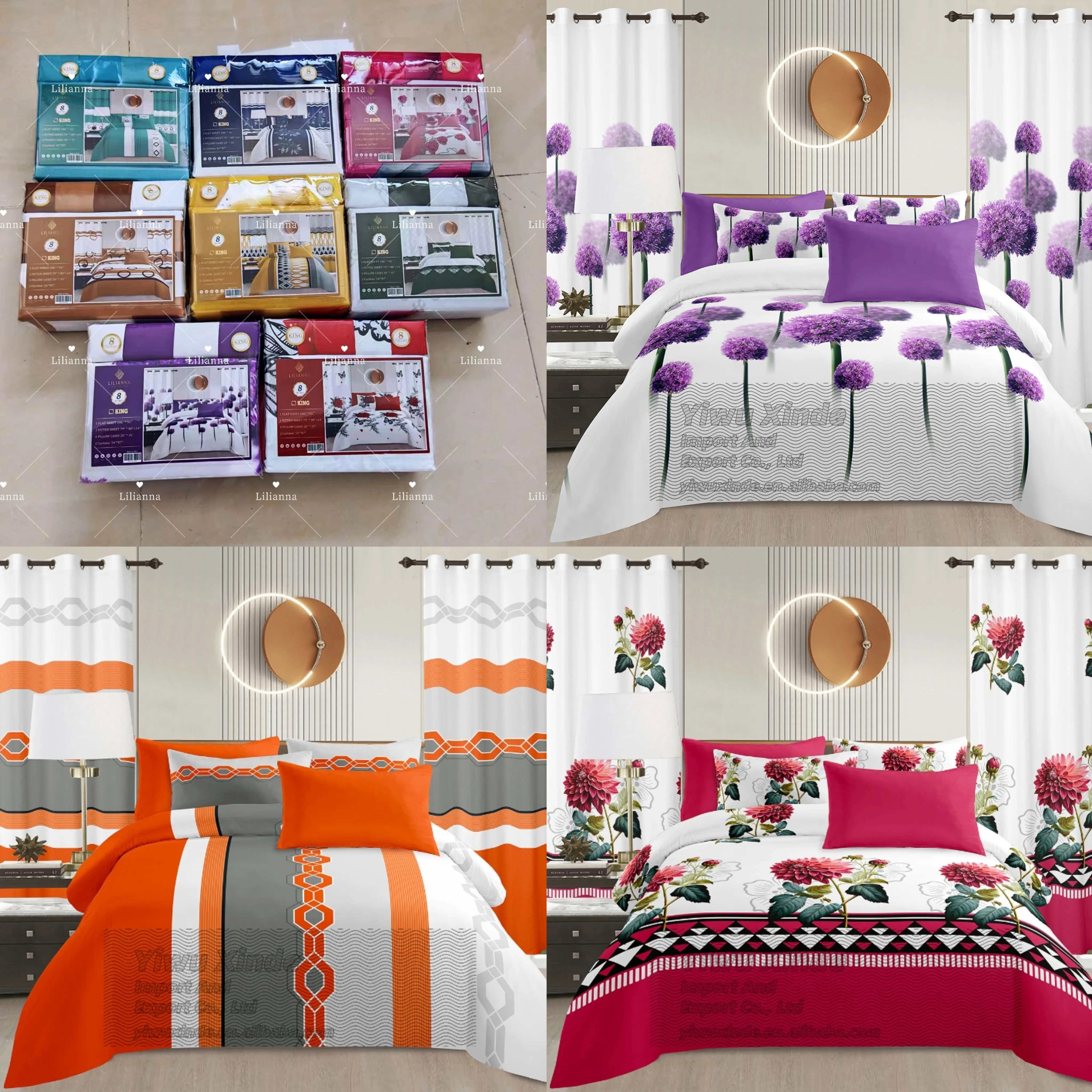 Wholesale 8PCS Bedding Sets Sheet Set High Quality King Queen Size Bedding Set Bedroom 6Pcs Sheets With Curtains for Home Use