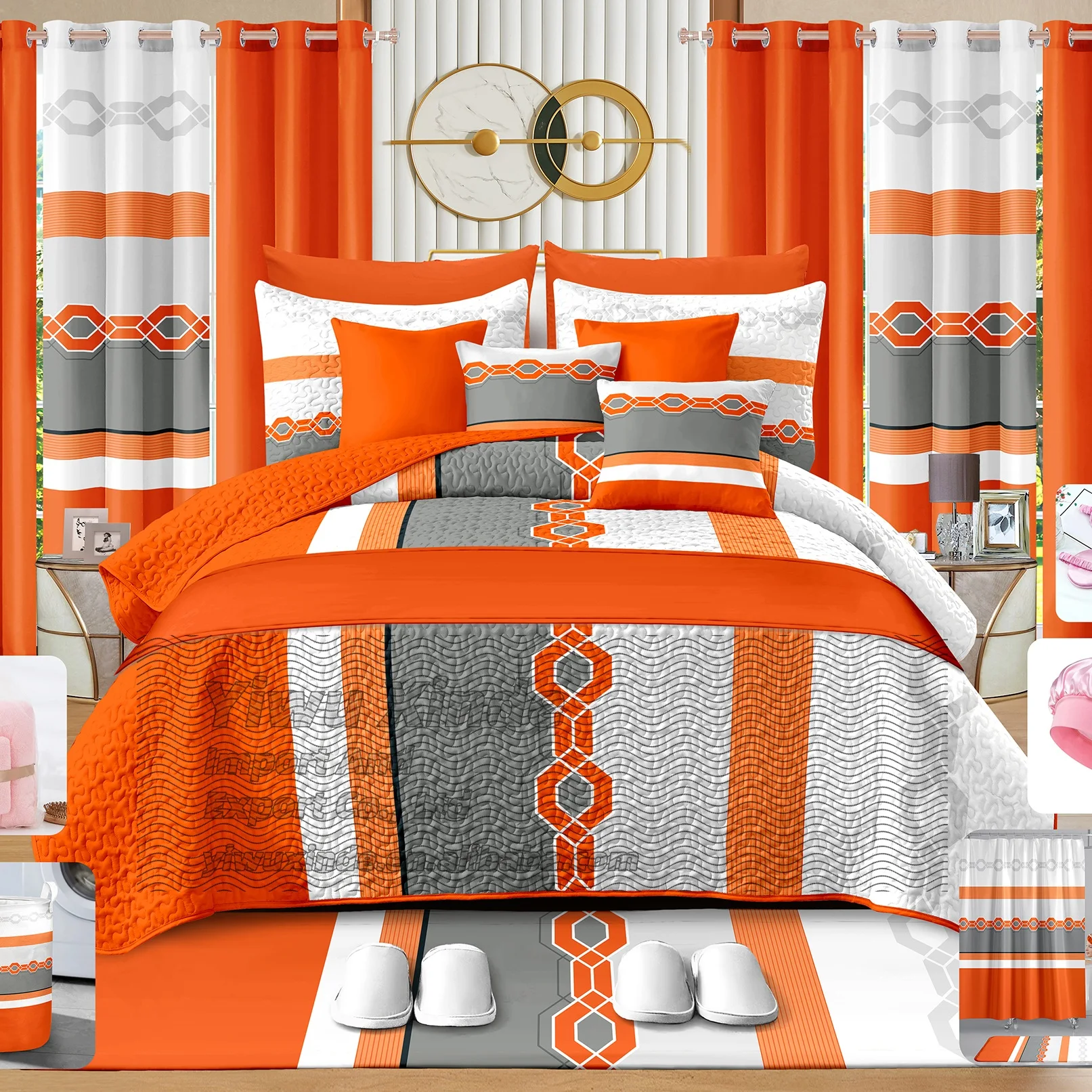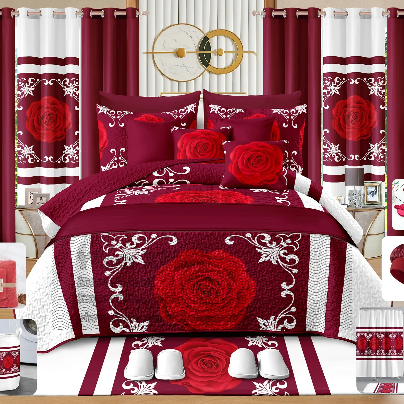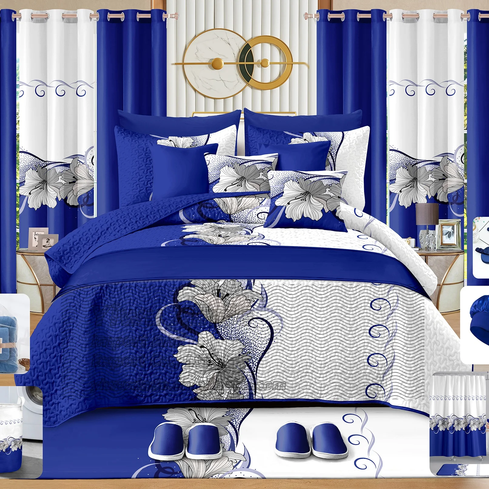 30Pcs Printed Bedding Set, Striped Cotton Bedspread with Matching Curtains King Size Floral Cartoon Vintage Mix