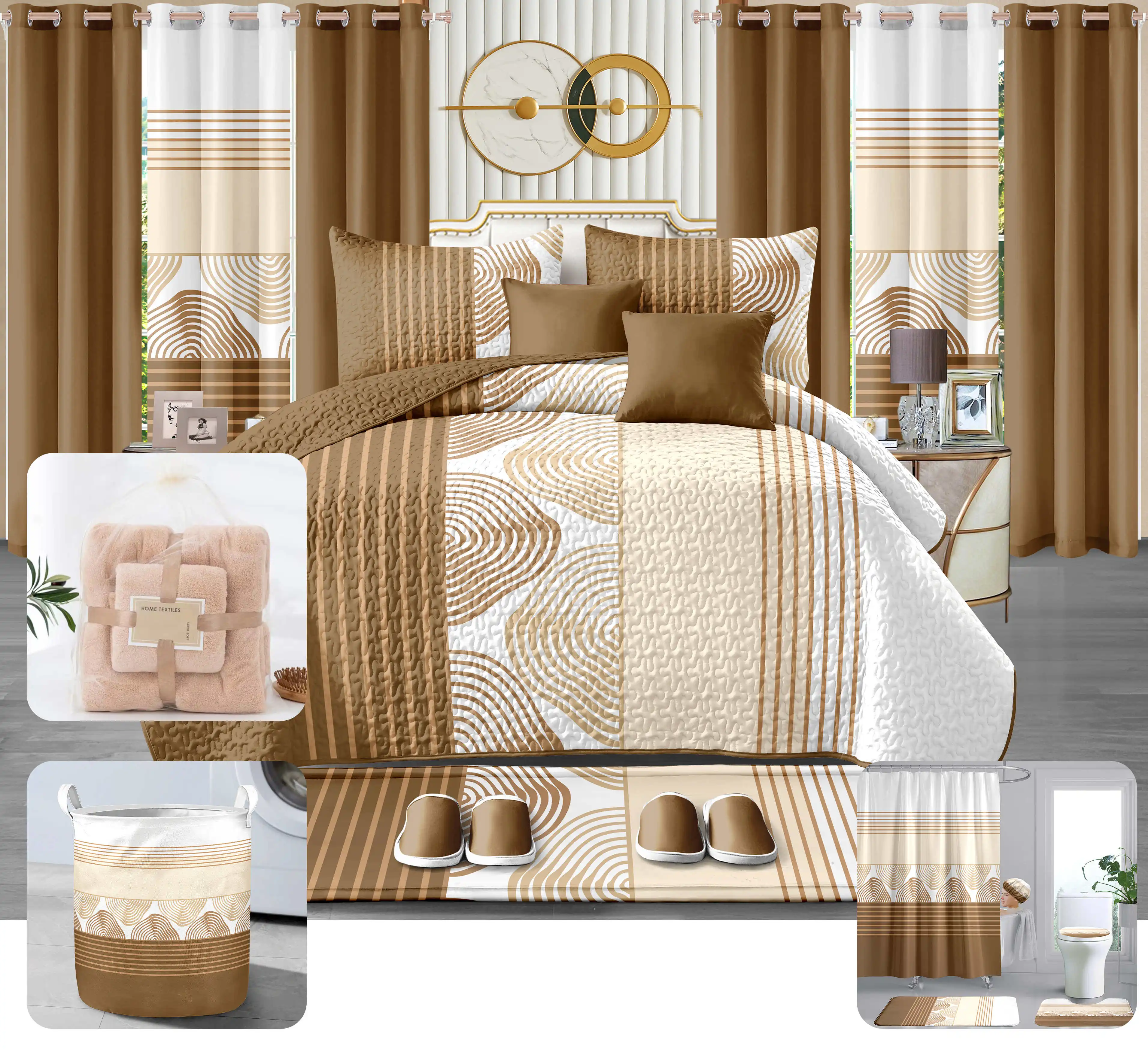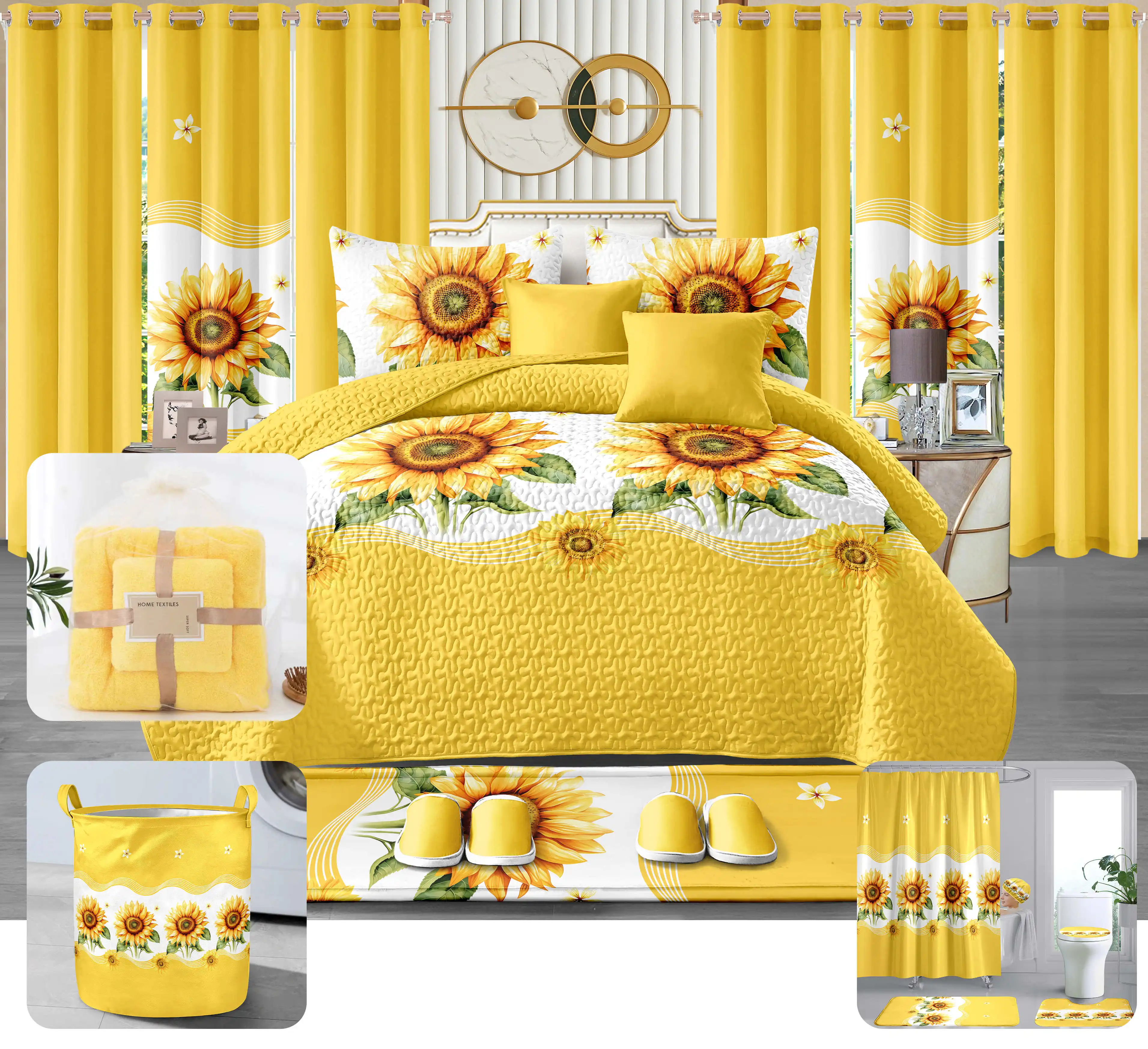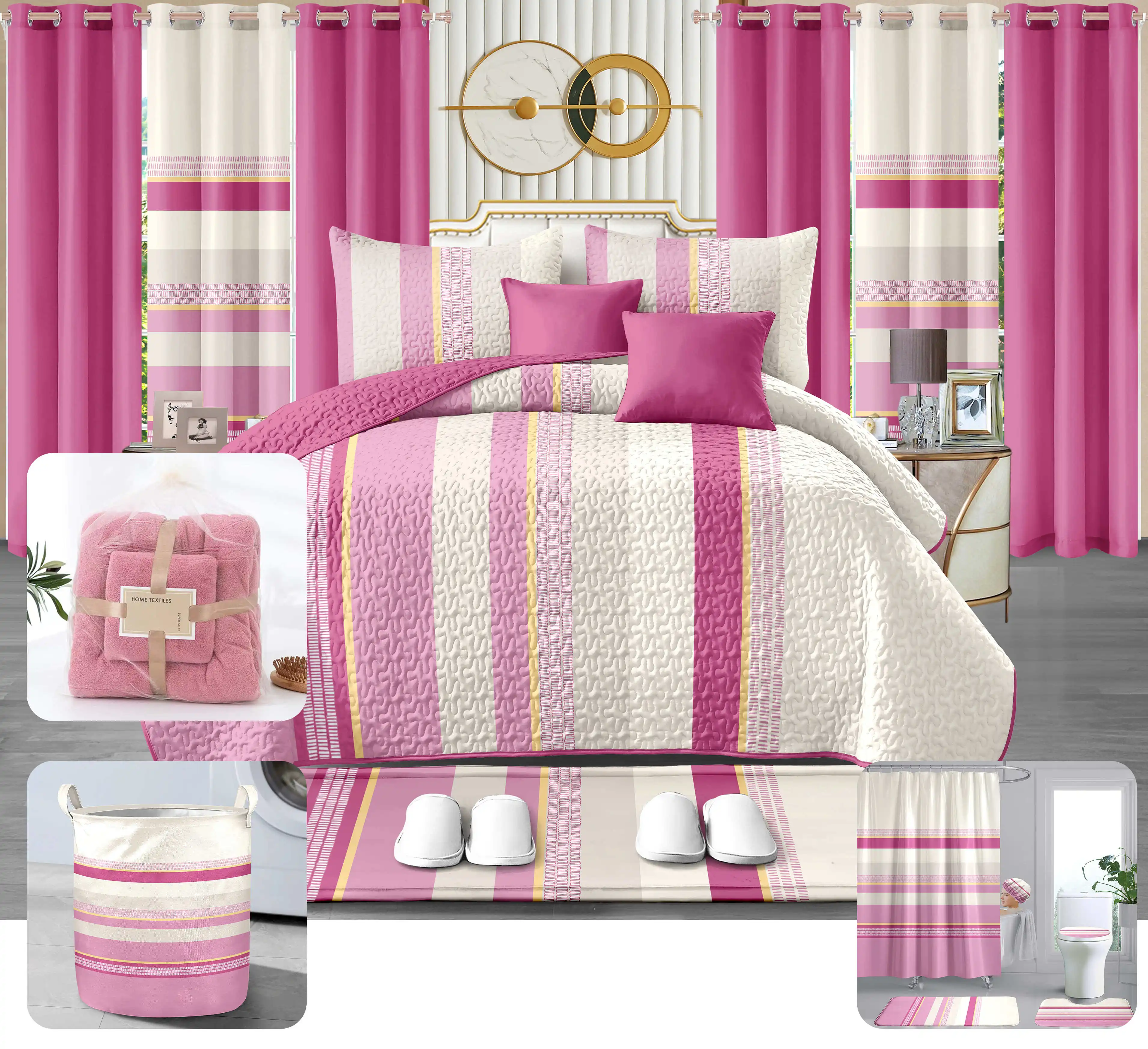 Customized Red 24 Pieces Home Textiles Polyester Quilted Bedcover Printed Bedspread Set