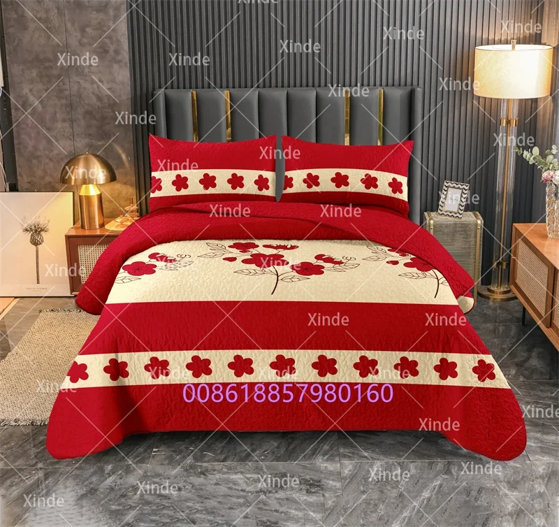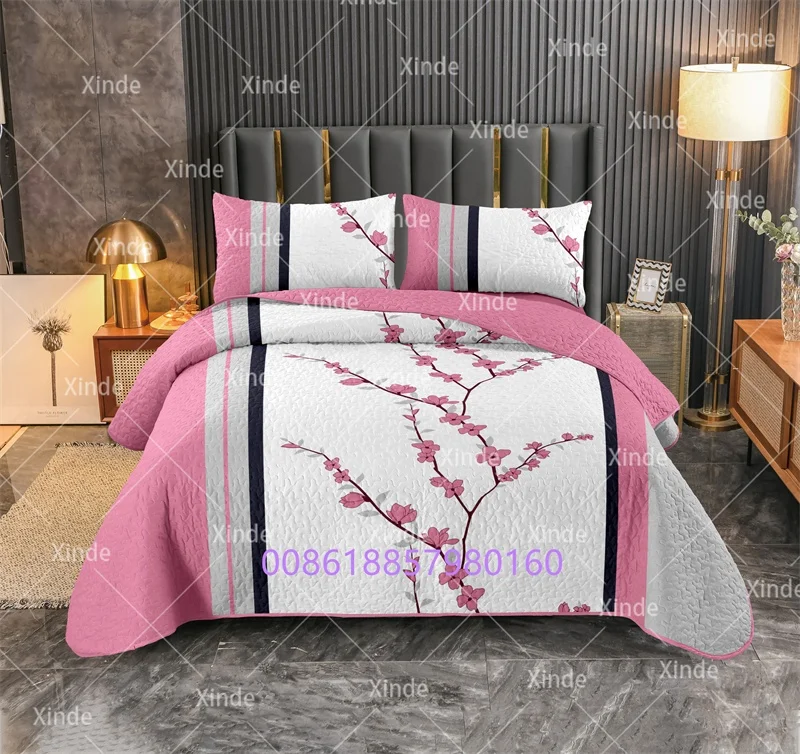 Customized King Size Floral Bedspread Set 3-Piece Quilt Bedding for Home