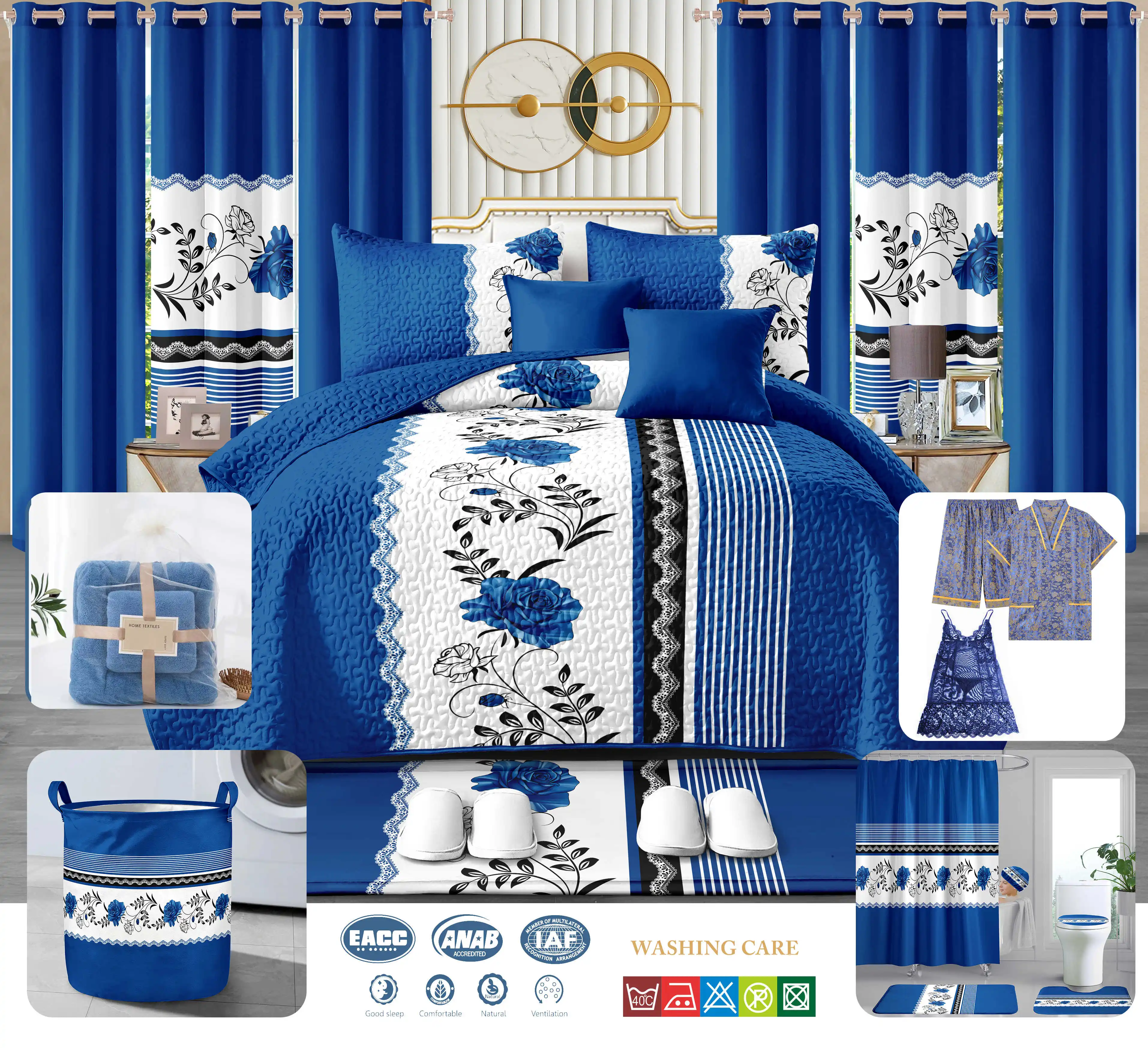 LILIANNA Collection 26 Pcs Bedding Set Sheet Curtain Bedsheet Home Textiles Sheet Set