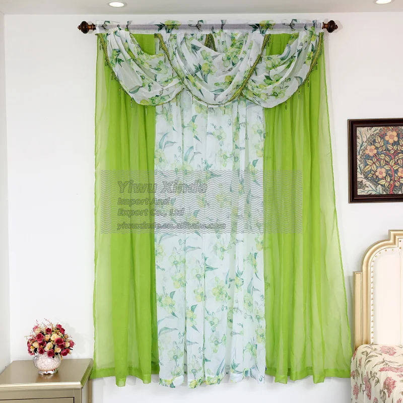 In Stock Window Decoration Floral Curtains Cheap Price Tulle House Curtains with Valance for the Living Room