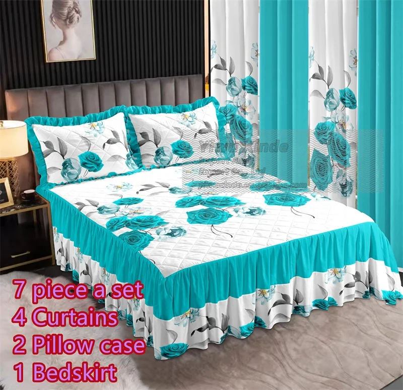 New Design 7 Piece Ruffled Quilt Bedding Sheet Set Deep Pocket Skirt Ruffle Linen Red Color Fitted Sheet Set
