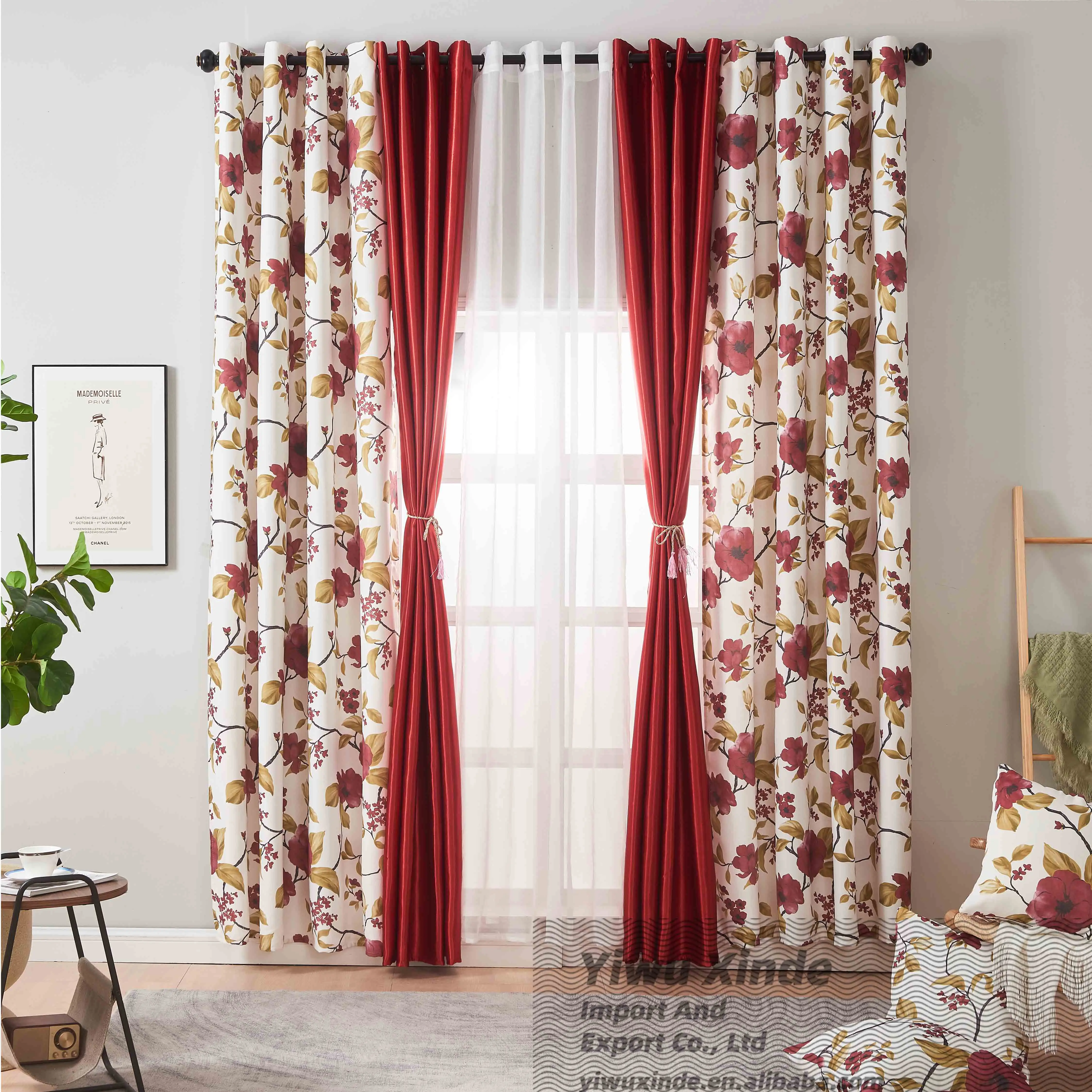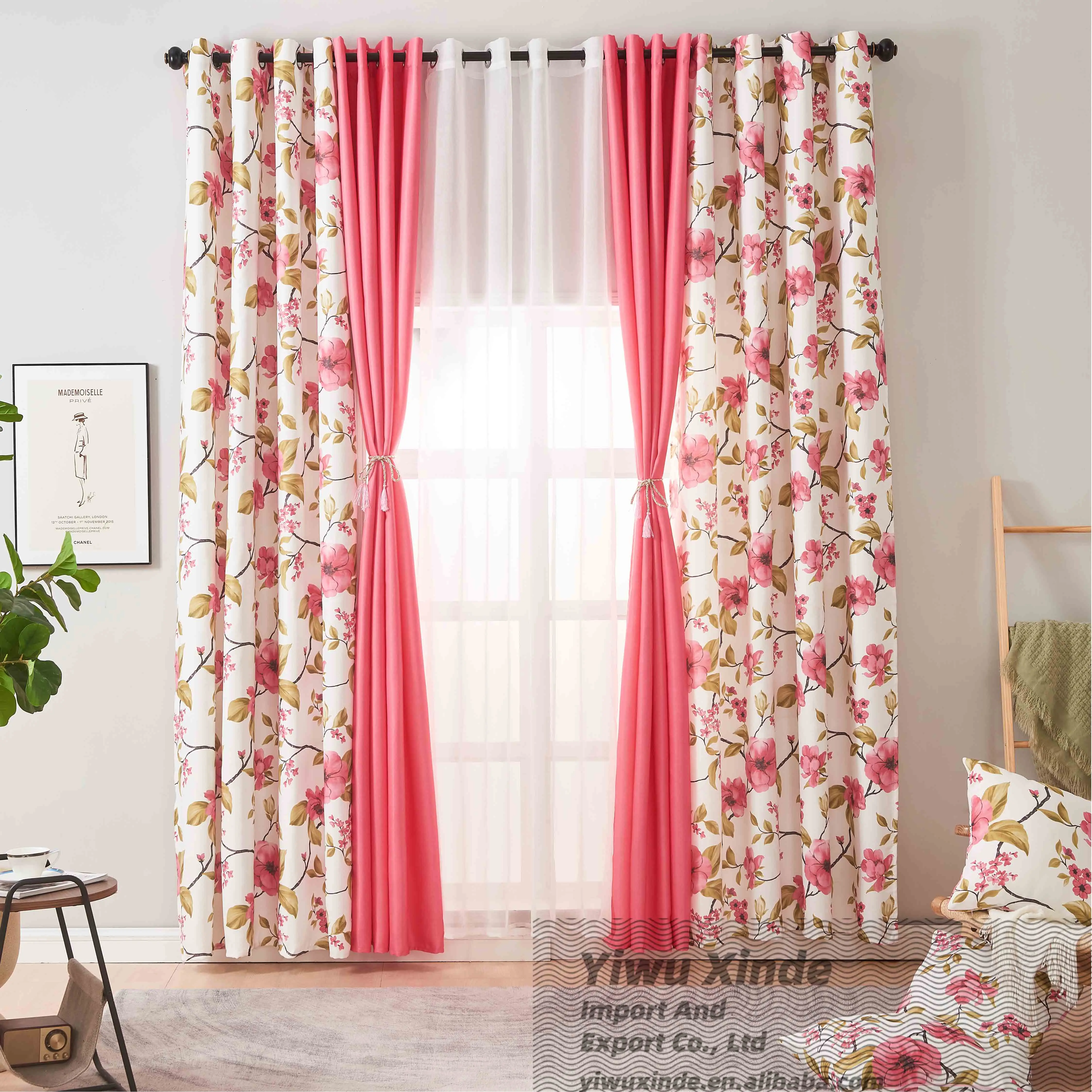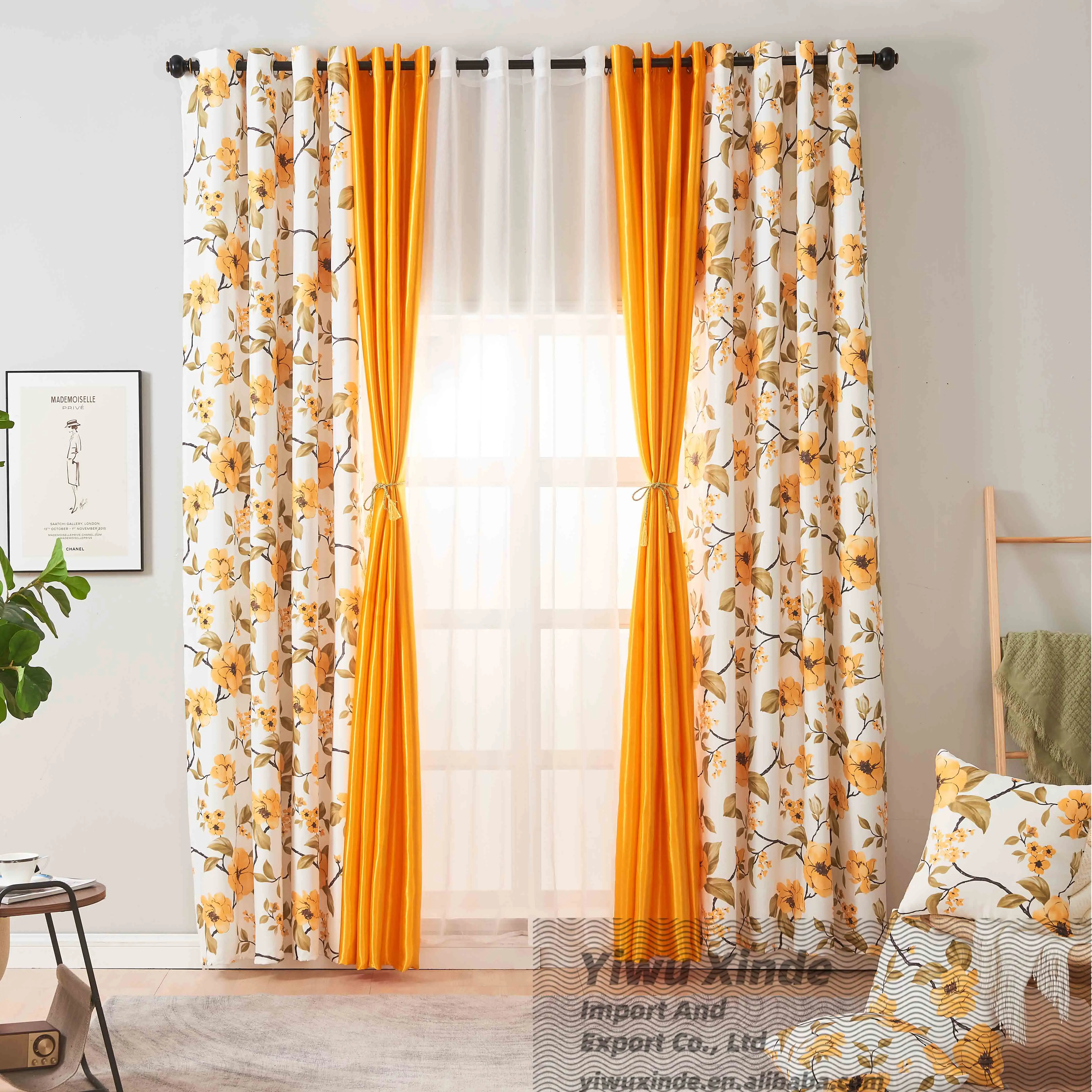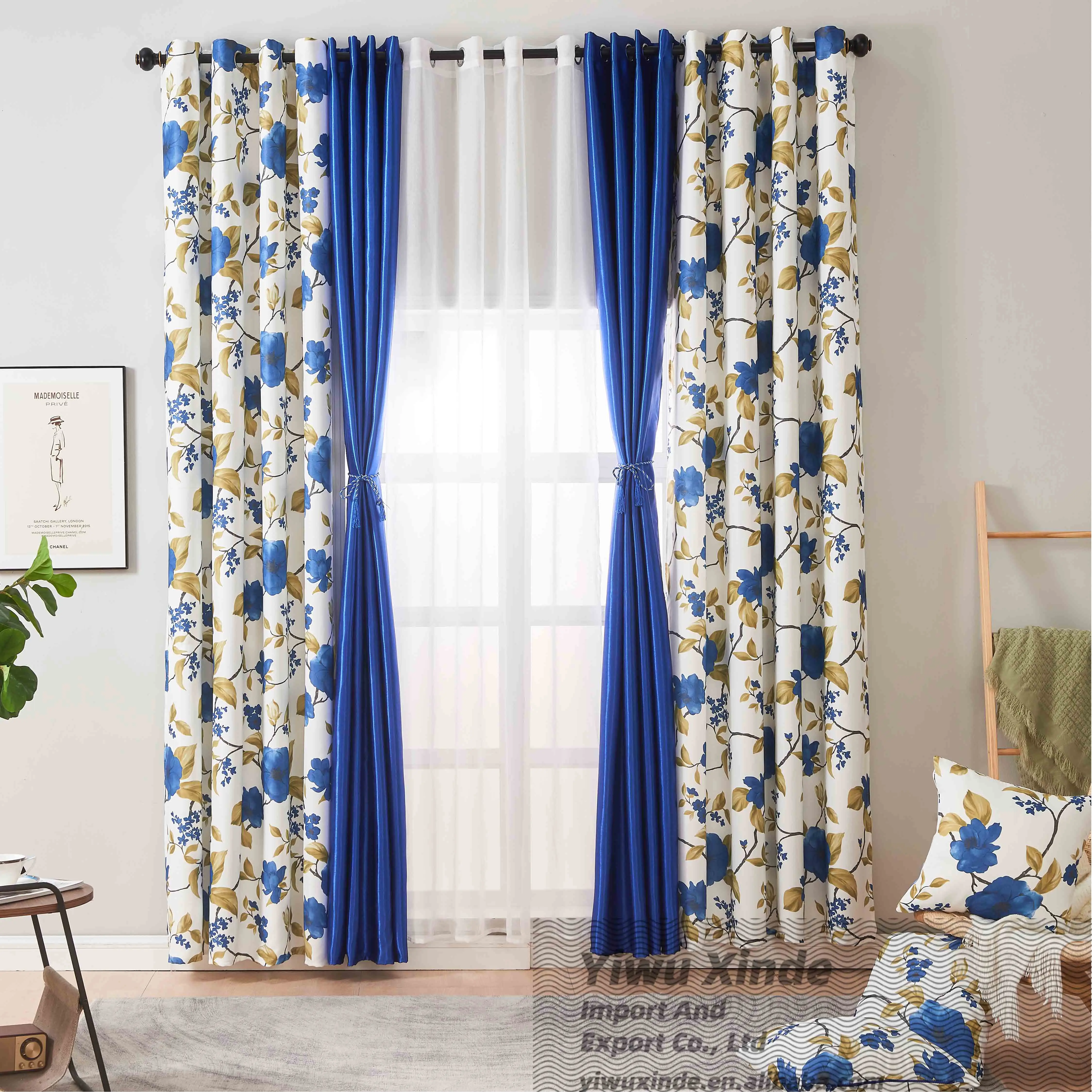 American Style Elegant Room Curtains Home Window Curtain Printed Plant Style Blackout Curtain Fabric