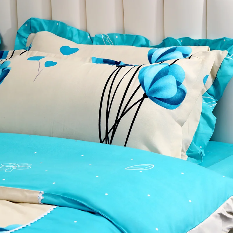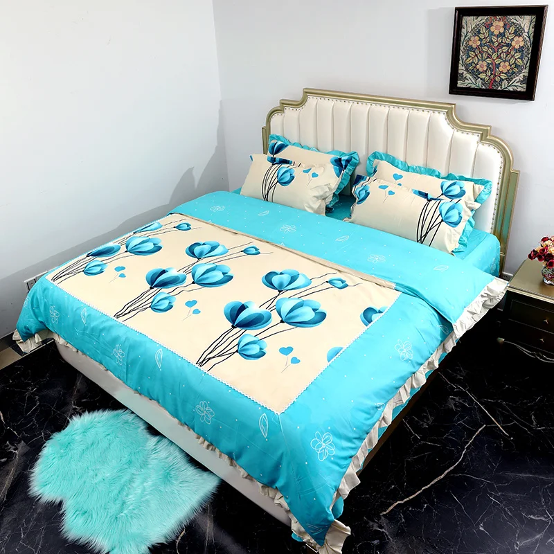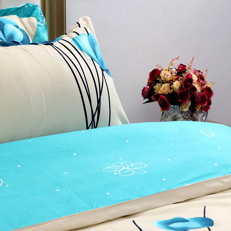 100% Cotton Printed Luxury 6pc Queen King Size Comforter Set Soft Breathable Duvet Cover Flat Sheet Pillowcases for Home Hotel