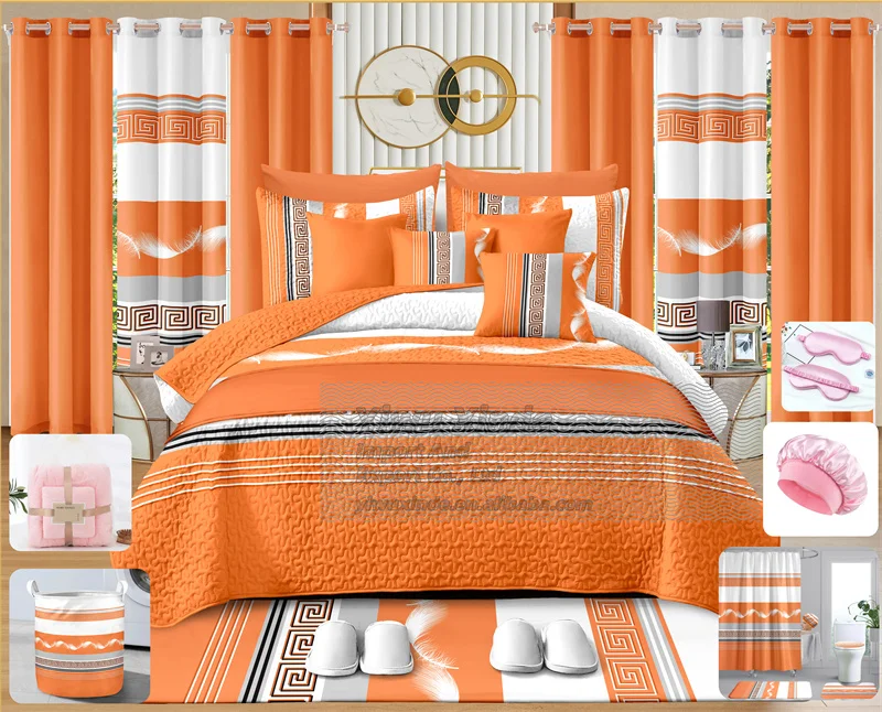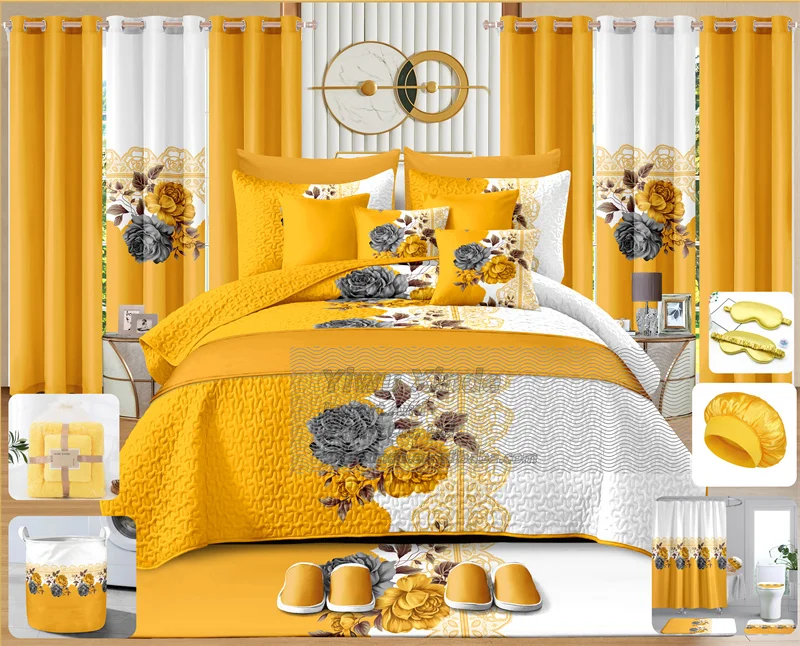 Bedding 30 Piece Cotton Bedspread Quilt Set for Bed 30 Pcs BedSheets Set Collection King Size Bedding Set with Curtains