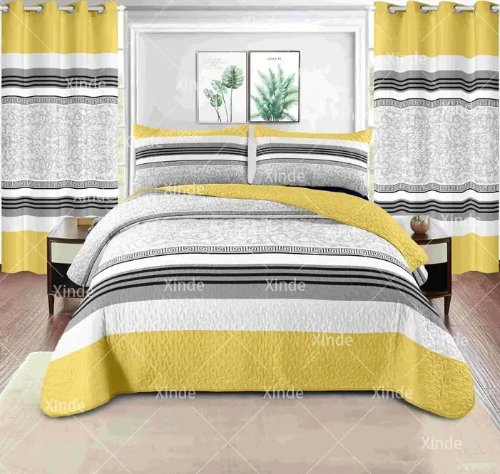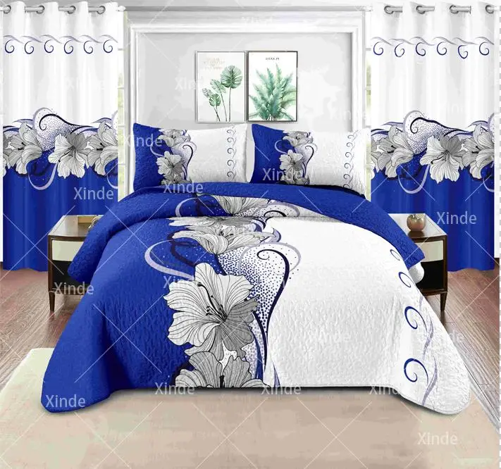 LILIANNA Latest Models 6pcs Microfiber Quilt Bedding Sets with Matching Curtains Cotton king Size Bedspread Quilt Sets for Beds