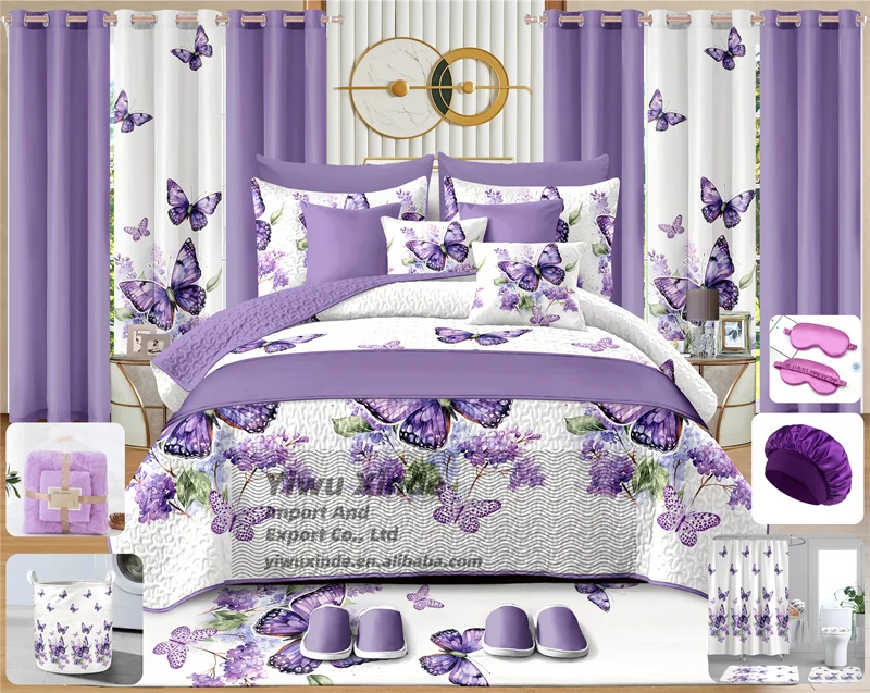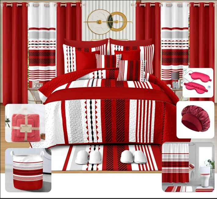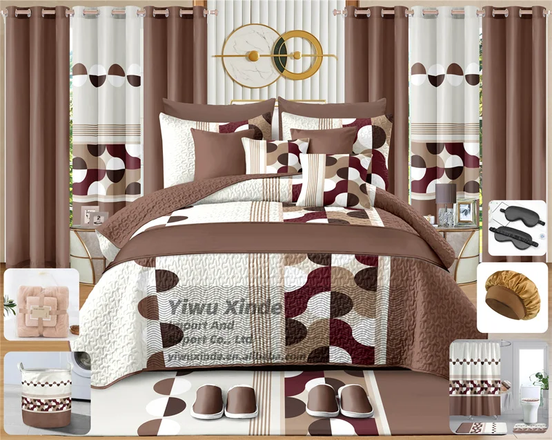 Customized Brand New Cobertores De 30 Piezas with Bathroom Set and Matching Curtains Ready to Ship king Size Polyester 30pcs Set