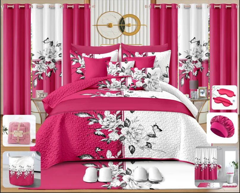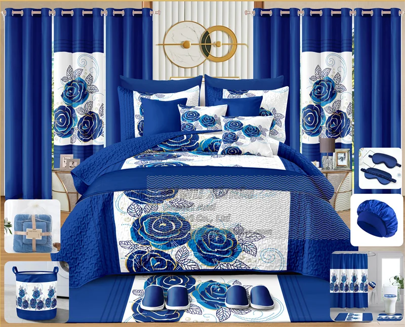 LILIANNA Customized king Size 30 Pieces Quilted Sheet Sets With Curtains 100% Polyester Bedspread Set with Bathroom Sets