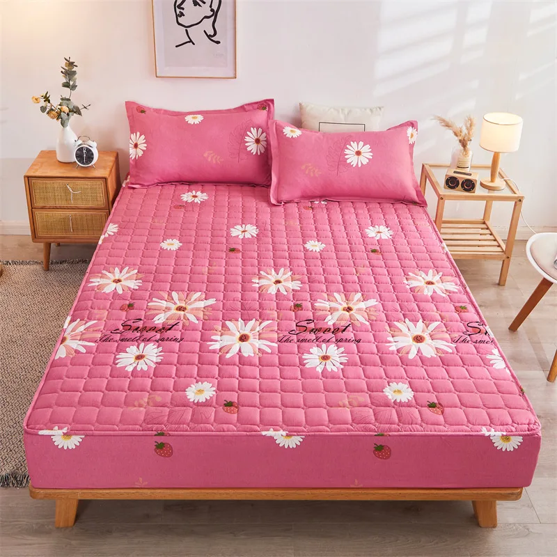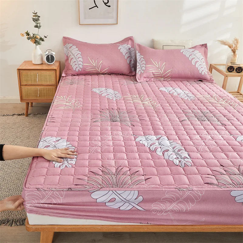 3PC Geometric Pattern Mattress Bed Sheets Protector Simple Fitted Sheets and Pillowcase Bedsheets Wholesale Fitted Sheets Set