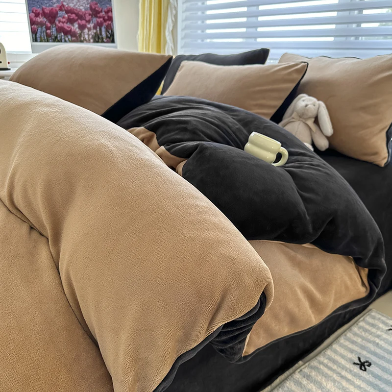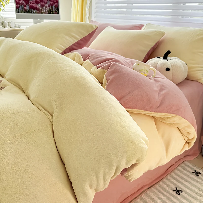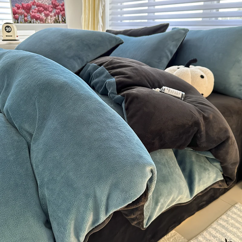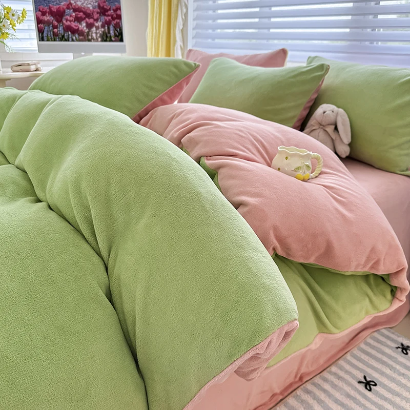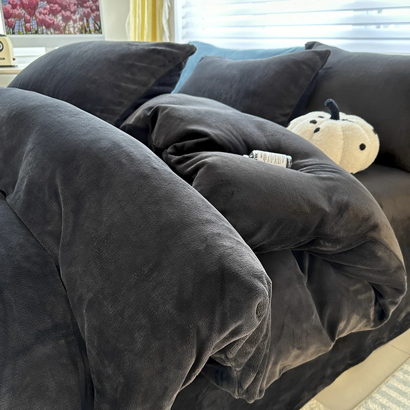 Solid Color Fleece Duvet Cover Set Velvet Plain Bedding Sheet Set with Zipper