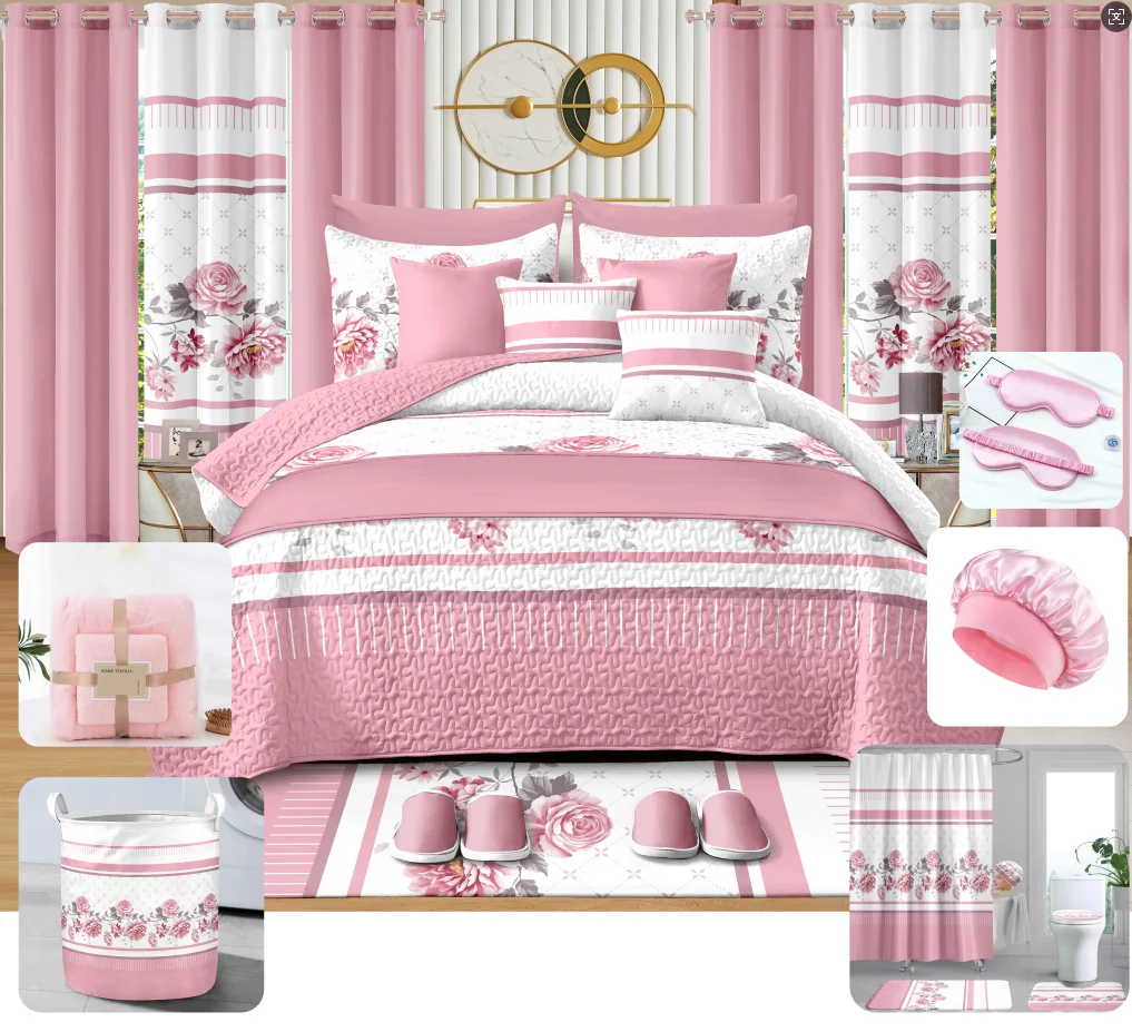 King Size 30 Pcs Bed Sheet Set Luxury Bedding Set LILIANNA Floral Printed Bedding Collection for Modern Bedroom Decor