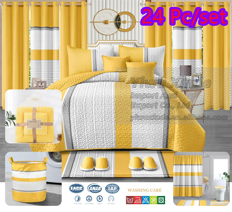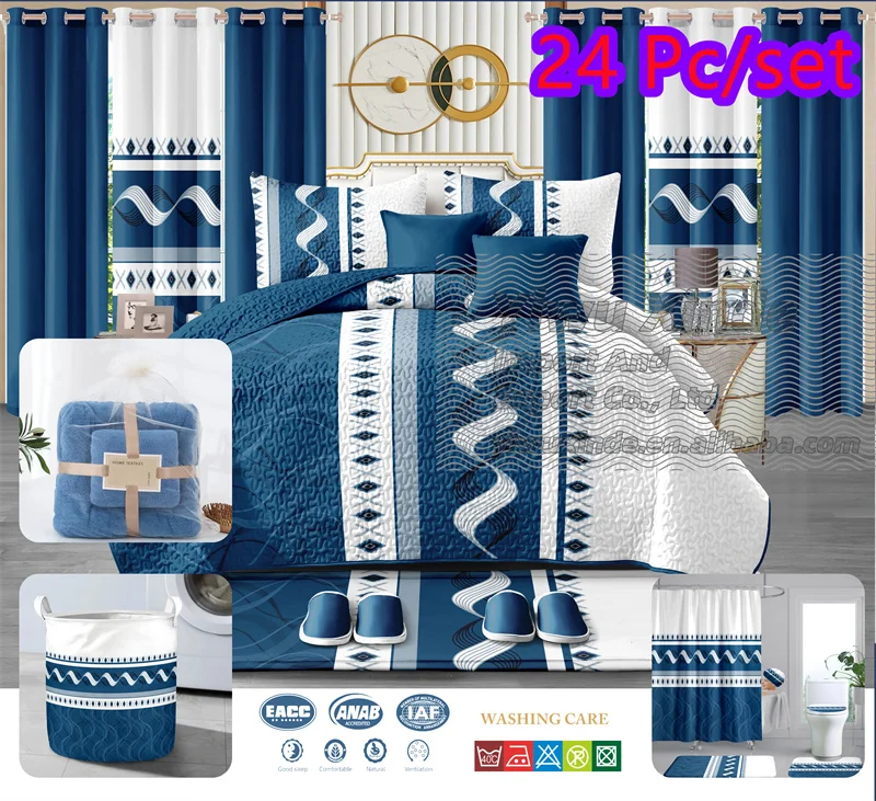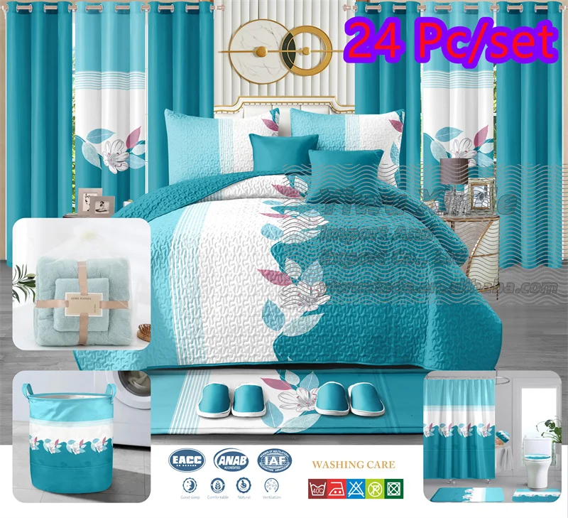 Factory Sell Directly Bed Spread Set 30pcs 26pcs 24 Pcs king Size Bedding Bed Sheets Set with Matching Curtains