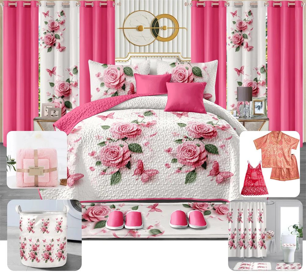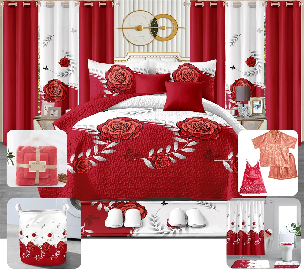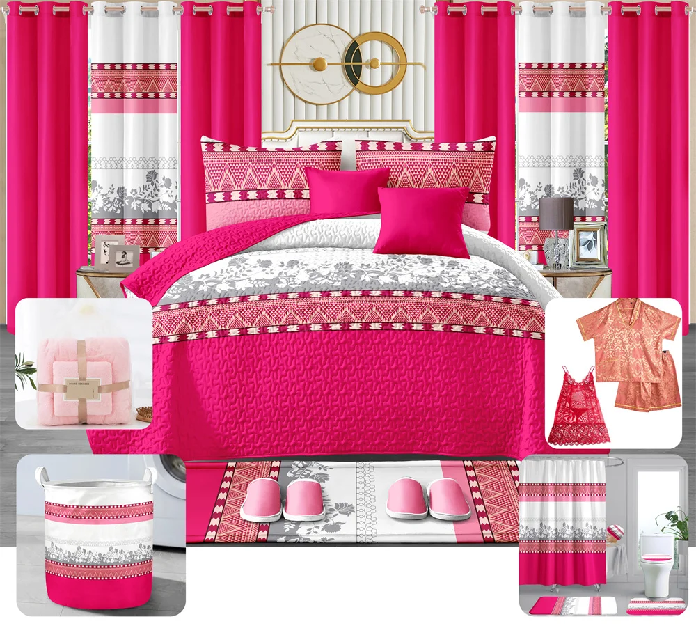 LILIANNA Collections Bedding Set Wholesale king Size Bedspread Bedroom 26 Pieces Bedding Set with Curtains Pajamas Ready to Ship