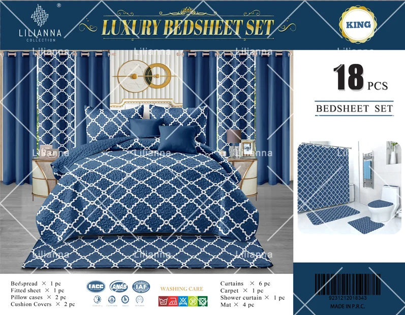 Wholesale Luxury 18 Piece Bedspreads Match Shower Curtain Bed Sheet Cotton Set Grounding Bed Sheet