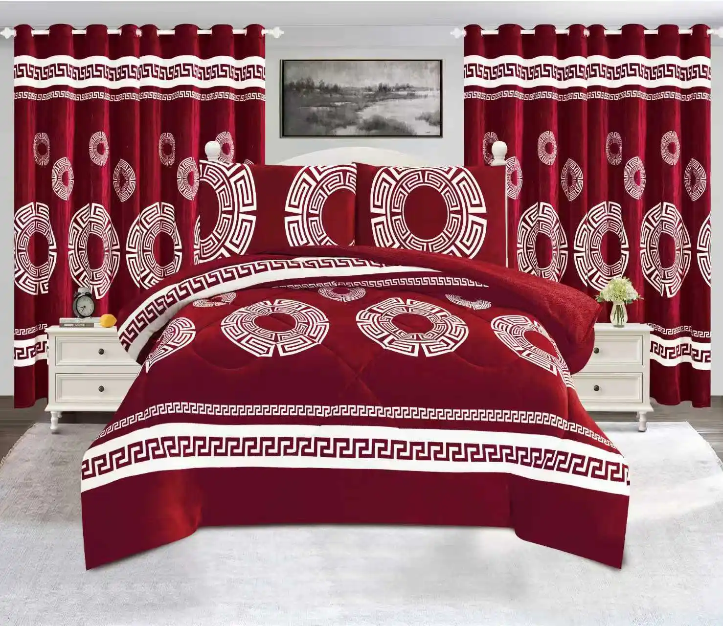 Factory Price king Size Quilt Set Duvet Set 7 Pieces king Size Borrego Sherpa Winter Comforter Set with Curtains