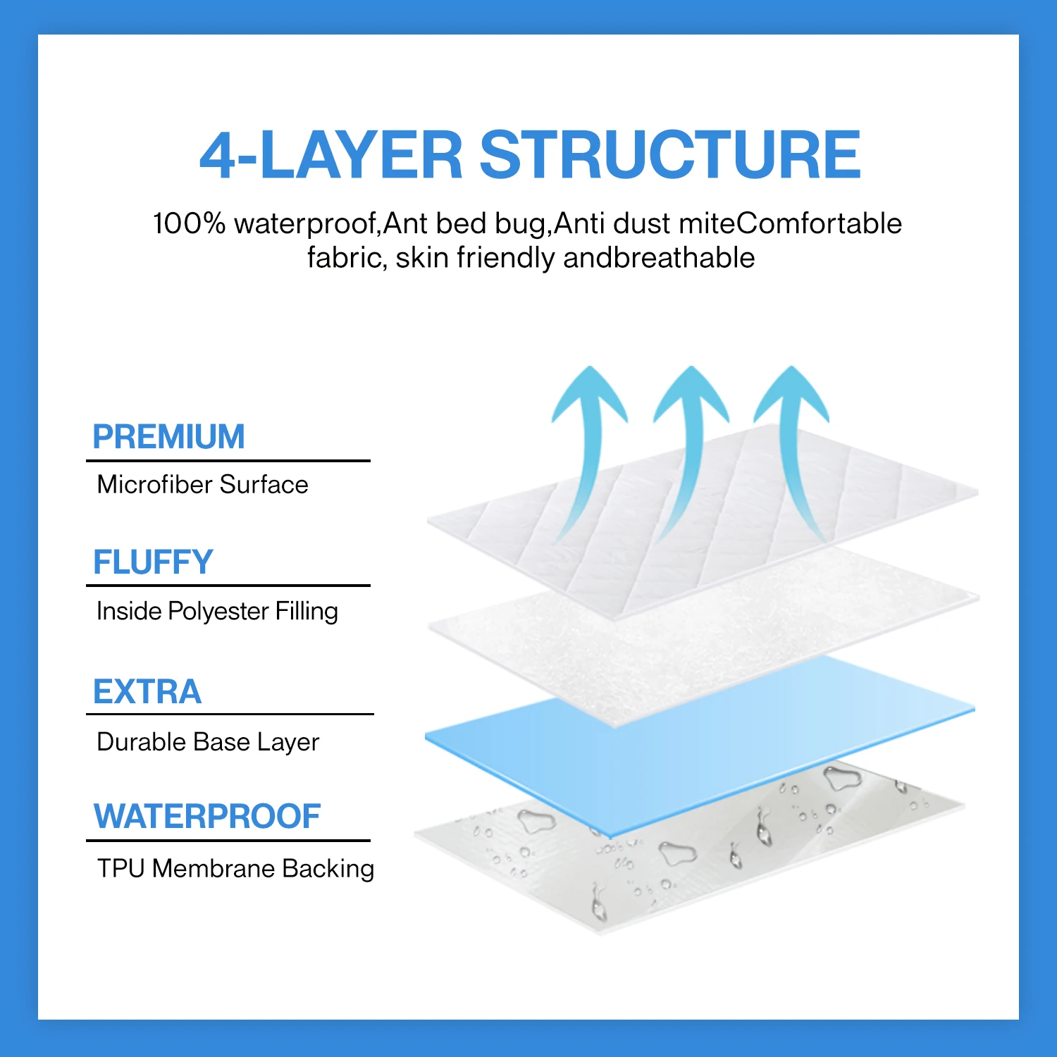 Microfiber Terry Waterproof Bed Bug Proof Antibacterial Bed Mat Noiseless Queen Size Hospital Use Water Proof Cover