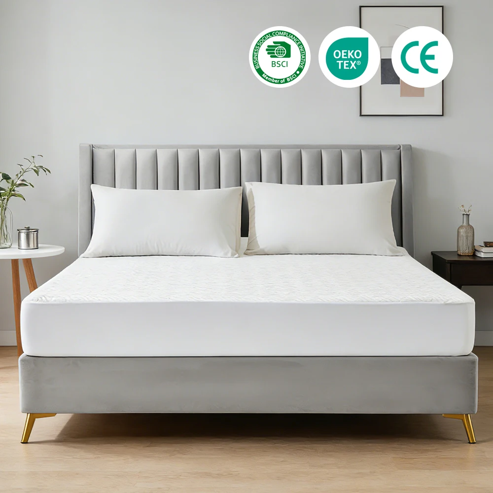 Hypoallergenic Air-Permeable Bed Mattress Protector Quilted Waterproof Cover Plain Style Knitted Technique Air Layer Bed Mat