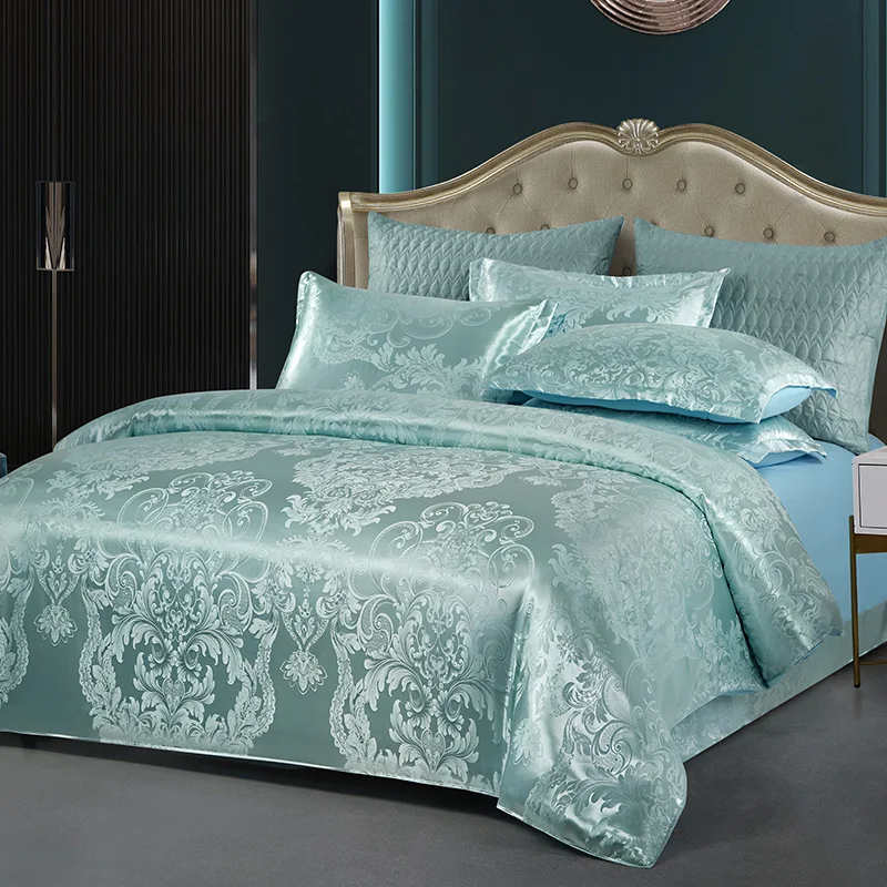 Hot Selling 4pcs Bedding Set Queen King Luxury Wedding Bedding Set Silky Satin Jacquard Duvet Covet Set With 2 Pillowcases