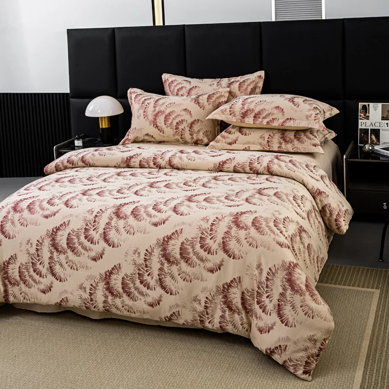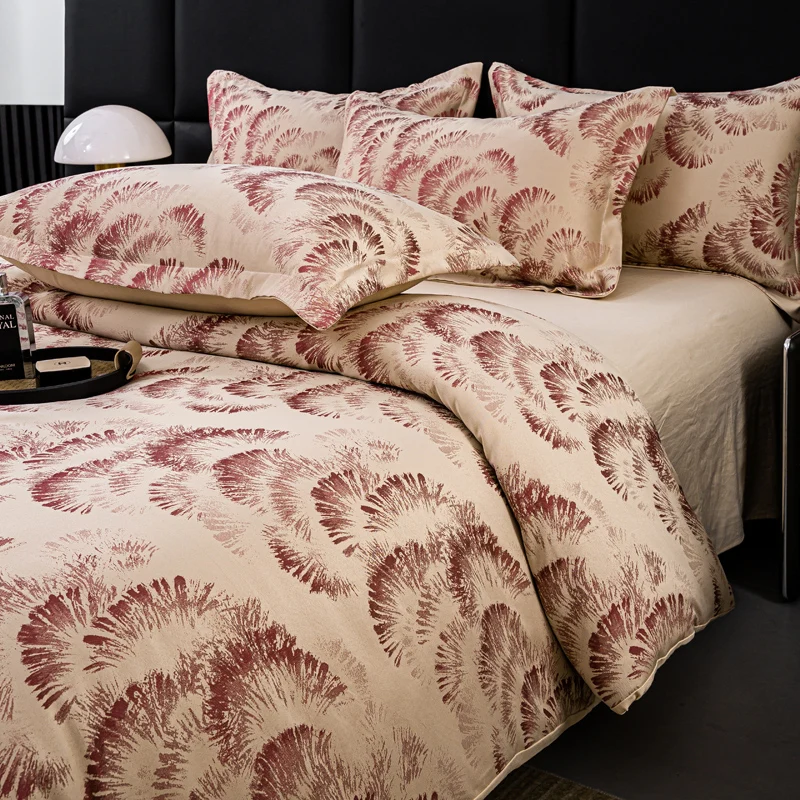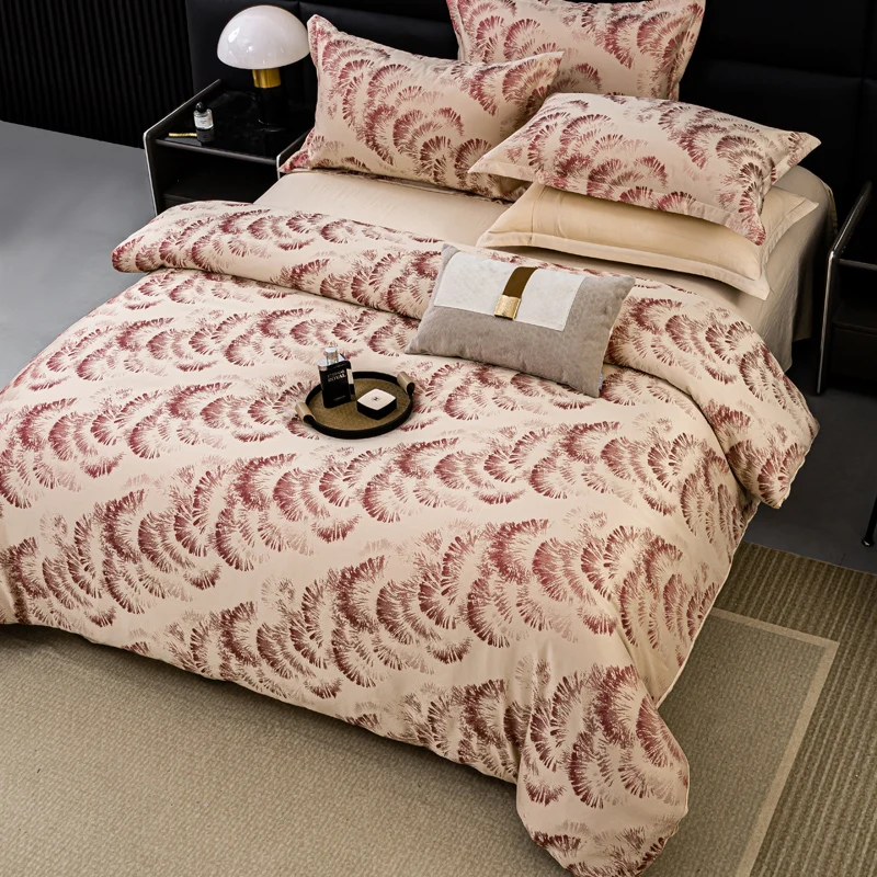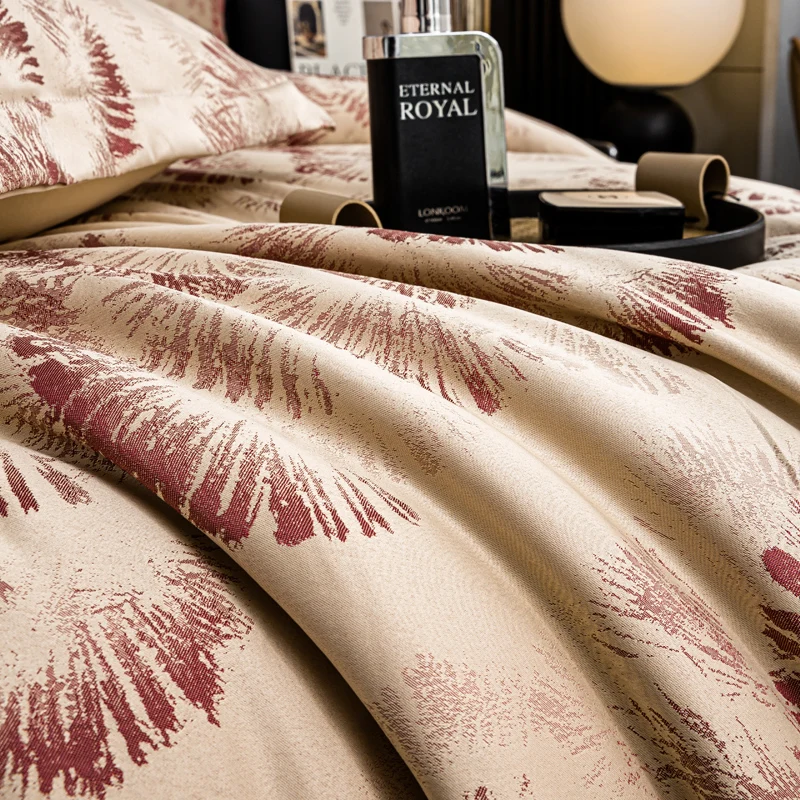 Custom European Bedding Set Satin Silk Queen King Size Four-piece Set Bed Sheet Quilt Cover Sets Wedding Jacquard Bedding